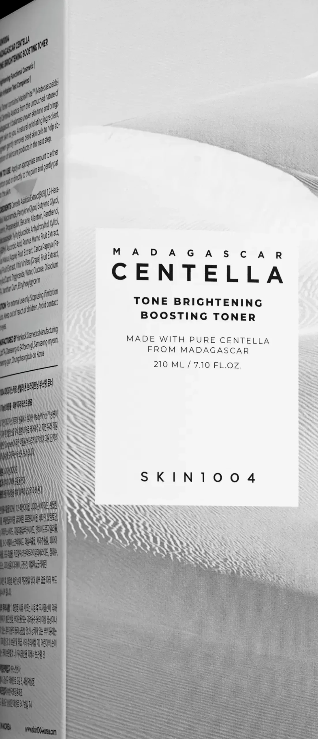 SKIN1004 Centella Tone Brightening Boosting Toner on ihon sävyä kirkastavan ja ihoa rauhoittavan tuotelinjan kasvovesi, joka hyödyntää koostumuksessaan 90% Centellaa (rohtosammakonputkea) sekä vitamiinipitoisia hedelmäuutteita ja niasiiniamidia.