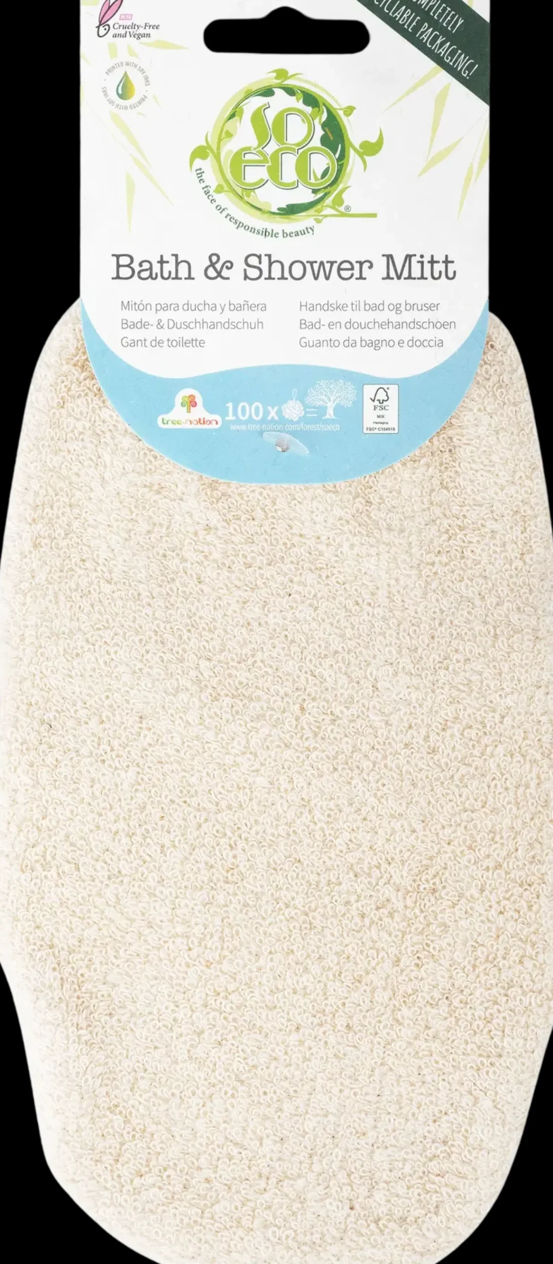So Eco Bath & Shower Mitt on pesukinnas suihkuun ja kylpyhetkiin. Se poistaa hellävaraisesti lian, öljyn ja epäpuhtaudet iholta. Kätevästi käteen asettuva kinnas on valmistettu ramie-kuidusta.