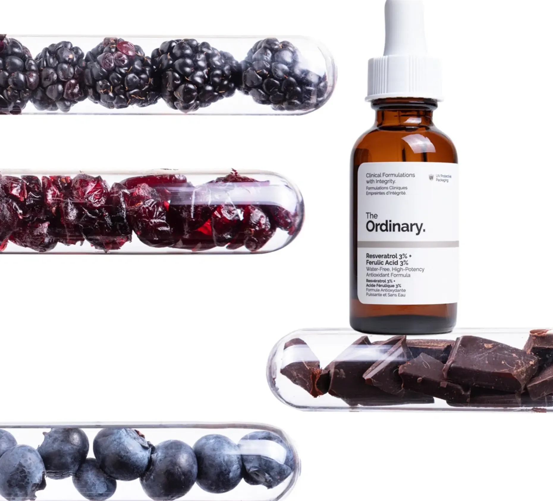 Feruliinihappo on voimakas fytokemiallinen antioksidantti, jota esiintyy luonnossa kasvisolujen seinämissä. Ihoa hoitavat tuotteet sisältävät yleensä pieniä pitoisuuksia resveratrolia ja feruliinihappoa, esim. 1 % ja 0,5 %. Tämä tuote sisältää molempia raaka-aineita 3 %, joka on erittäin korkea pitoisuus.