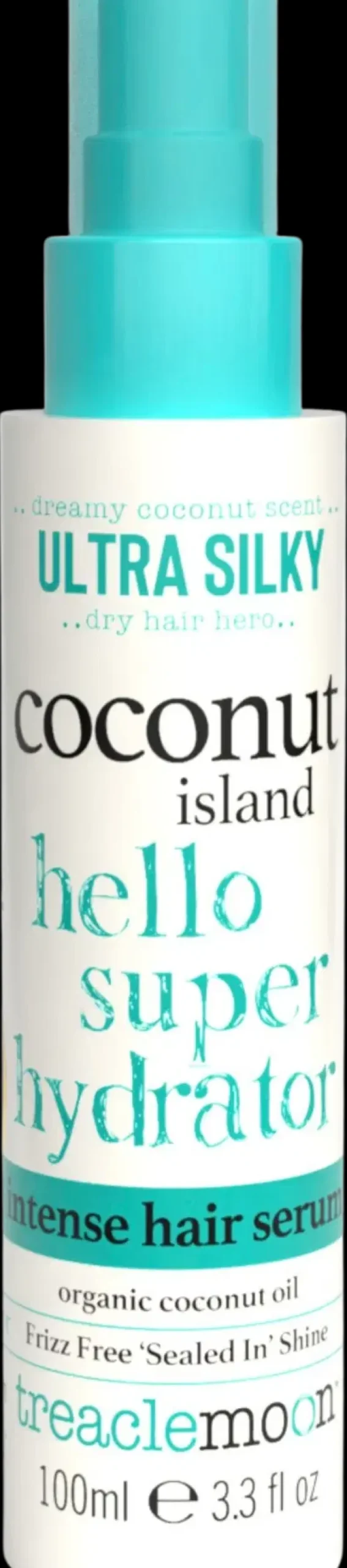 Treaclemoon My Coconut Island Hello Super Hydrator Intense Hair Serum -hiusseerumi on täydellinen valinta kuiville ja kosteusköyhille hiuksille. Tämä kevyt vegaaninen seerumi silottaa, selvittää ja kesyttää pörröisyyden jättäen hiukset silkinpehmeiksi, kiiltäviksi ja helposti käsiteltäviksi.
