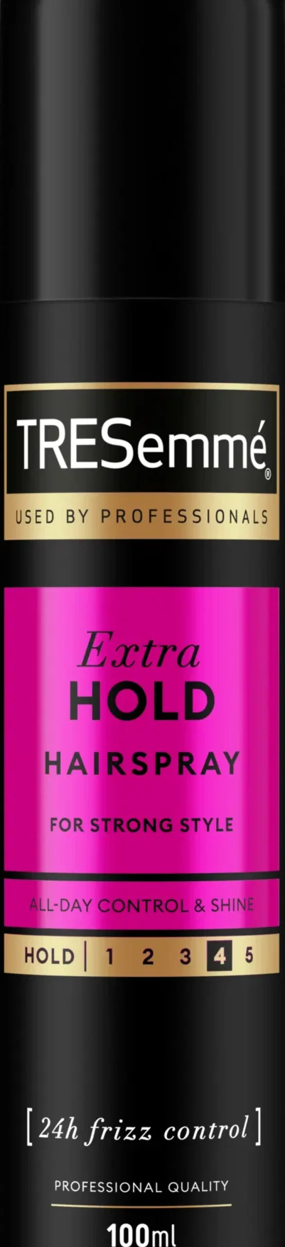 TRESemmé Extra Hold hiuskiinteen avulla viimeistelet kampauksesi kuin ammattilainen. TRESemmé Extra Hold tarjoaa salonkitason viimeistelyä hiuksillesi kätevässä 100 ml matkapakkauskoossa. Extra Hold on hiuskiinne, joka kuivuu nopeasti ja antaa kampauksellesi pitoa, joka kestää joka kahden vuorokauden ajan. Tämä hiuslakka pitää lentelevät irtohiukset kurissa ja varmistaa parhaan mahdollisen, mutta kuitenkin joustavan pidon. Nauti helposti hallittavasta kampauksesta, joka pysyy upeana joka säässä, sillä hiuskiinne suojaa kampaustasi myös kosteudelta.