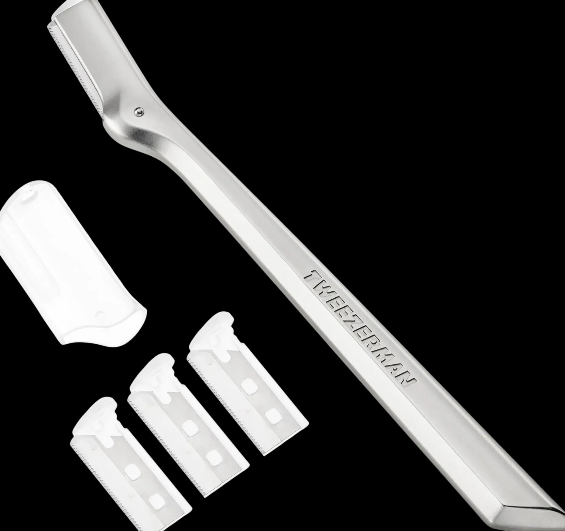 Kulmaveitsen lyhyellä terällä poistuu kulmakarvojen ylä- ja alaosan karvoitus vaivattomasti. Työkalun pieni muotoilu on erinomainen kulmien alueelle ja laadukkaan painava varsi edesauttaa oikeaoppista otetta ja terän asettumista iholle. Erinomaisesti käteen sopiva muotoilu on turvallinen käyttää ja materiaalina ruostumaton teräs. Teräs on helppo pitää puhtaana ja sen voi tarvittaessa steriloida kotona esim. asetonilla. Tarkasti reunoistaan ohennetut terät liukuvat iholla vaivatta ja poistavat pienimmätkin karvat yhdellä sipaisulla. Pakkauksessa mukana yksi varsi terällä, suojakorkki sekä 3kpl vaihtoteriä.