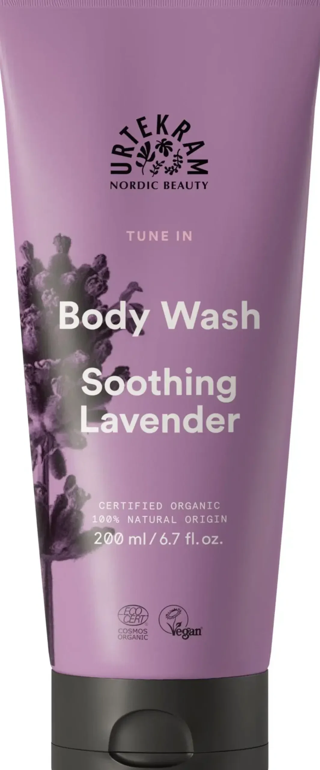 Urtekram Soothing Lavender suihkugeeli puhdistaa ja pehmentää ihon jättäen sen ihanan laventelin tuoksuiseksi. Kosteuttavat ainesosat kuten aloe vera ja luonnonmukaiset öljyt hemmottelevat ihoa. Luomusertifioitu Ecocert Cosmos Organic -standardin mukaisesti, vegaaninen ja 100 % biohajoava sekä 100 % luonnollista alkuperää oleva koostumus.