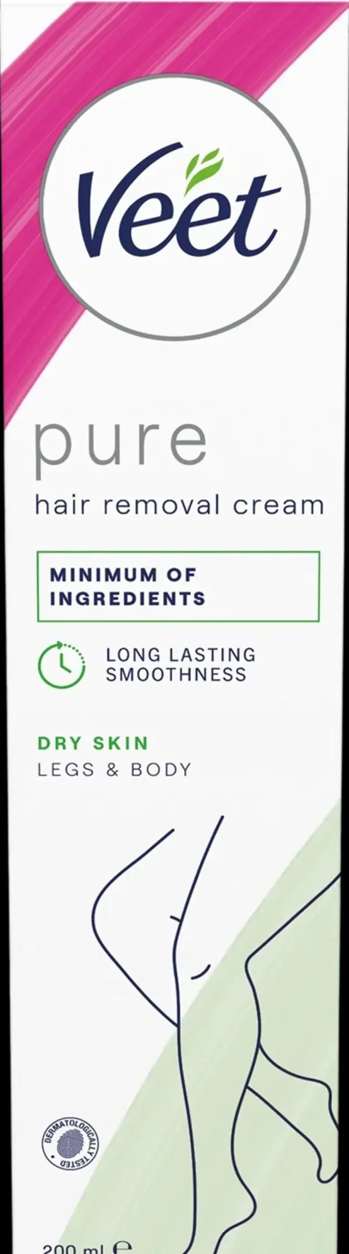 Veet Pure ihokarvanpoistovoiteen uudistettu koostumus on suunniteltu silkinsileän tunteen saamiseksi mahdollisimman vähin ainesosin, ilman ammoniakin hajua. Kuivalle iholle sopiva voide poistaa ihokarvat läheltä juurta ja toimii myös lyhyisiin karvoihin.