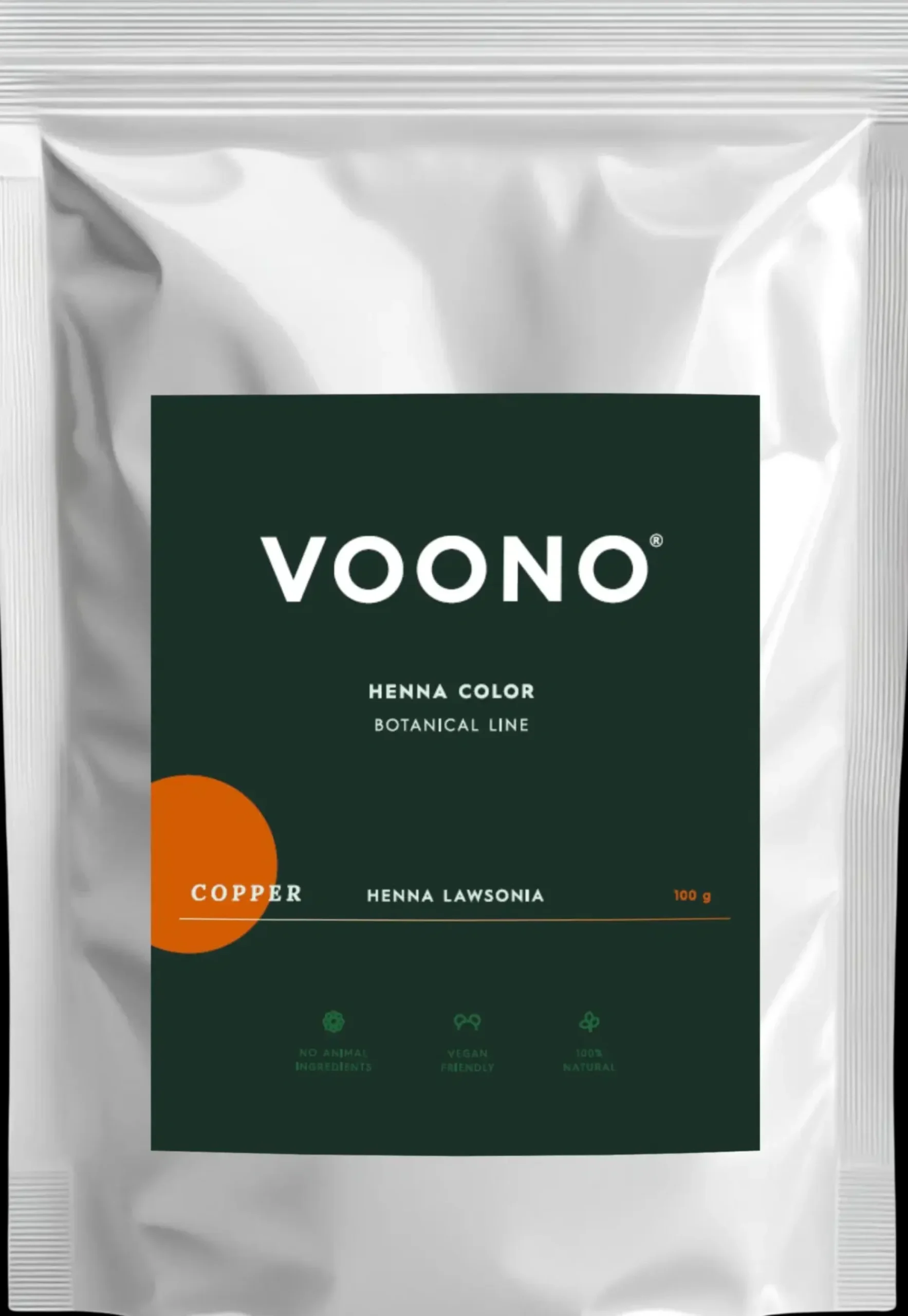 VOONO kuparinsävyisellä henna-kasvihiusvärillä annat hiuksillesi vivahteikkaan säteilevän oranssin sävyn. Luonnollinen hennaväri on hellä hiuksille eikä sisällä ylimääräisiä kemikaaleja tai keinotekoisia ainesosia. Hennaväri suojaa hiusta ja antaa sille kiiltoa. Kuparisävy sisältää vain Lawsonia Inermis -hennakasvia. Vegaaninen.