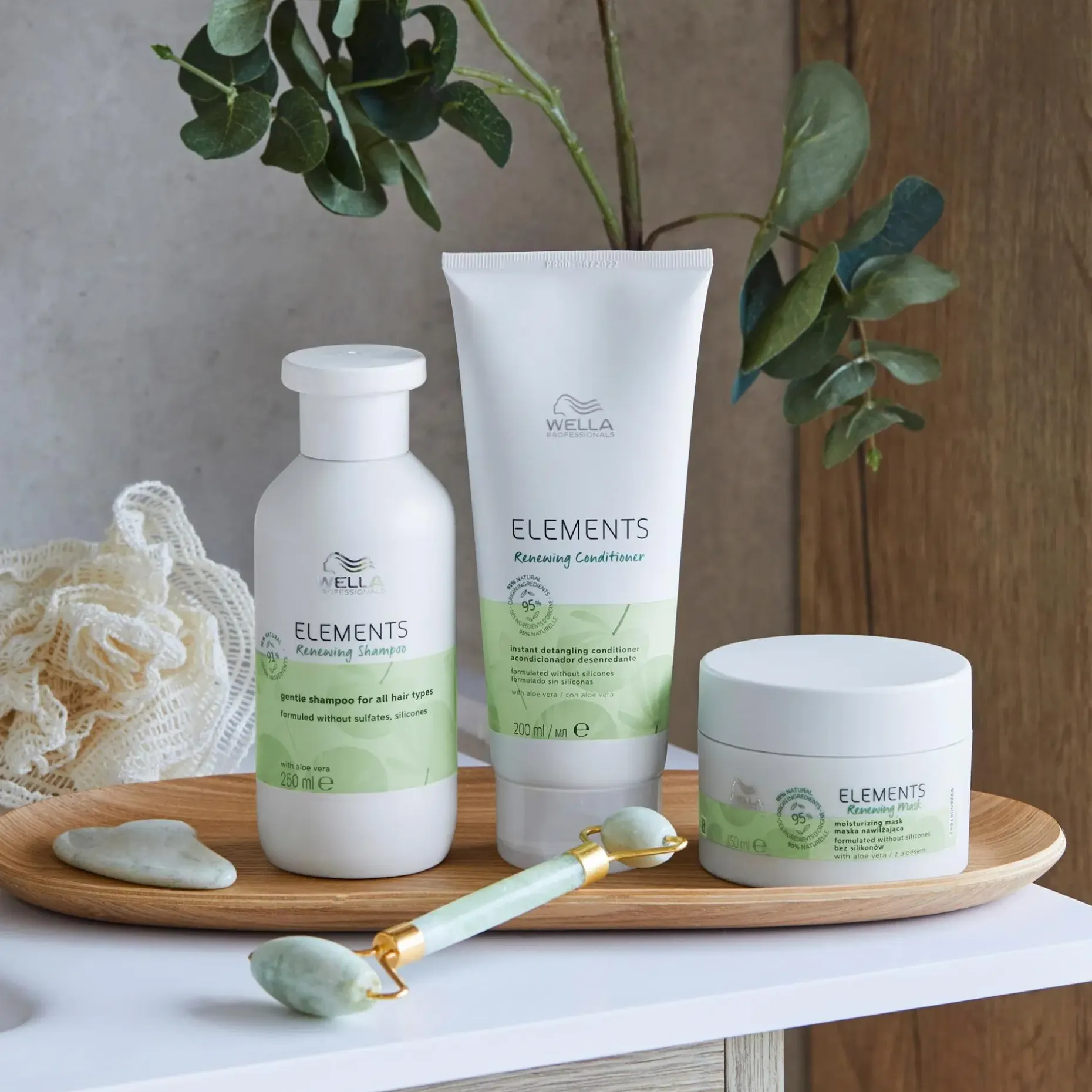 Wella Professionals Elements Renewing Shampoo on hellävarainen shampoo kaikille hiustyypeille. Ei sisällä sulfaatteja eikä silikoneja. Sisältää 91 % luonnollisia ainesosia ja ravitsee ja antaa hiuksille kiiltoa tyvestä latvoihin. Puhdistaa hiukset hellävaraisesti ja palauttaa niiden elinvoimaisuuden ja kiillon ja saa ne näyttämään ja tuntumaan terveiltä. Saatavana kolme kokoa: 50 ml, 250 ml ja 1000 ml.