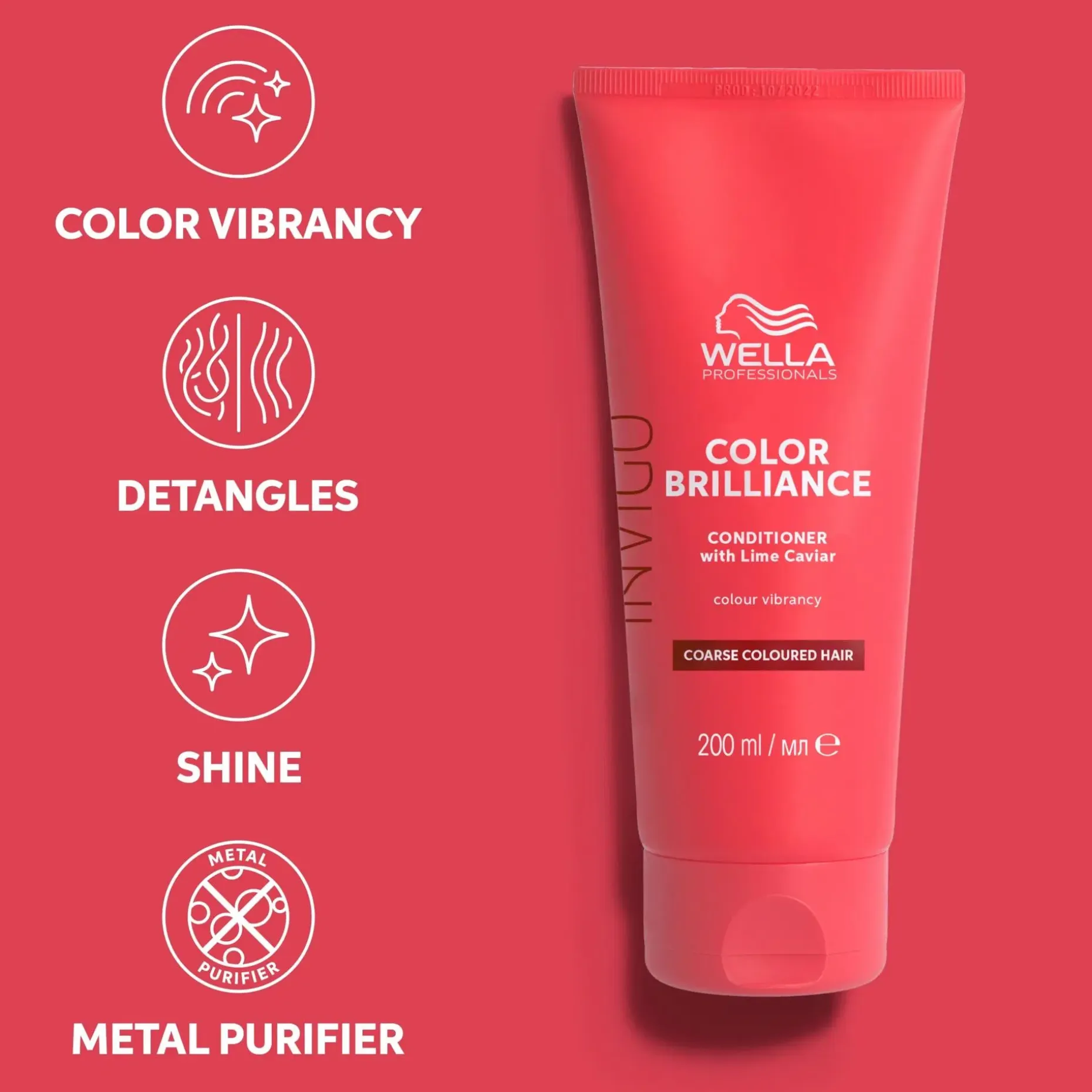 Wella Professionals Invigo Color Brilliance Conditioner Coarse on väriä ylläpitävä hoitoaine paksuille ja karheille hiuksille. Suunniteltu säilyttämään värin eloisuus ja parantamaan hiusten pintaa. Tekee hiuksista joustavat, kiiltävät ja vastustamattoman pehmeät. Sisältää Color Brilliance-Blend™ -yhdisteen ja limekaviaaria, joka sisältää runsaasti antioksidantteja ja vitamiineja ja auttaa hillitsemään värjäyksen jälkeistä hapettumista. Saatavana kaksi kokoa: 200 ml ja 1000 ml.
