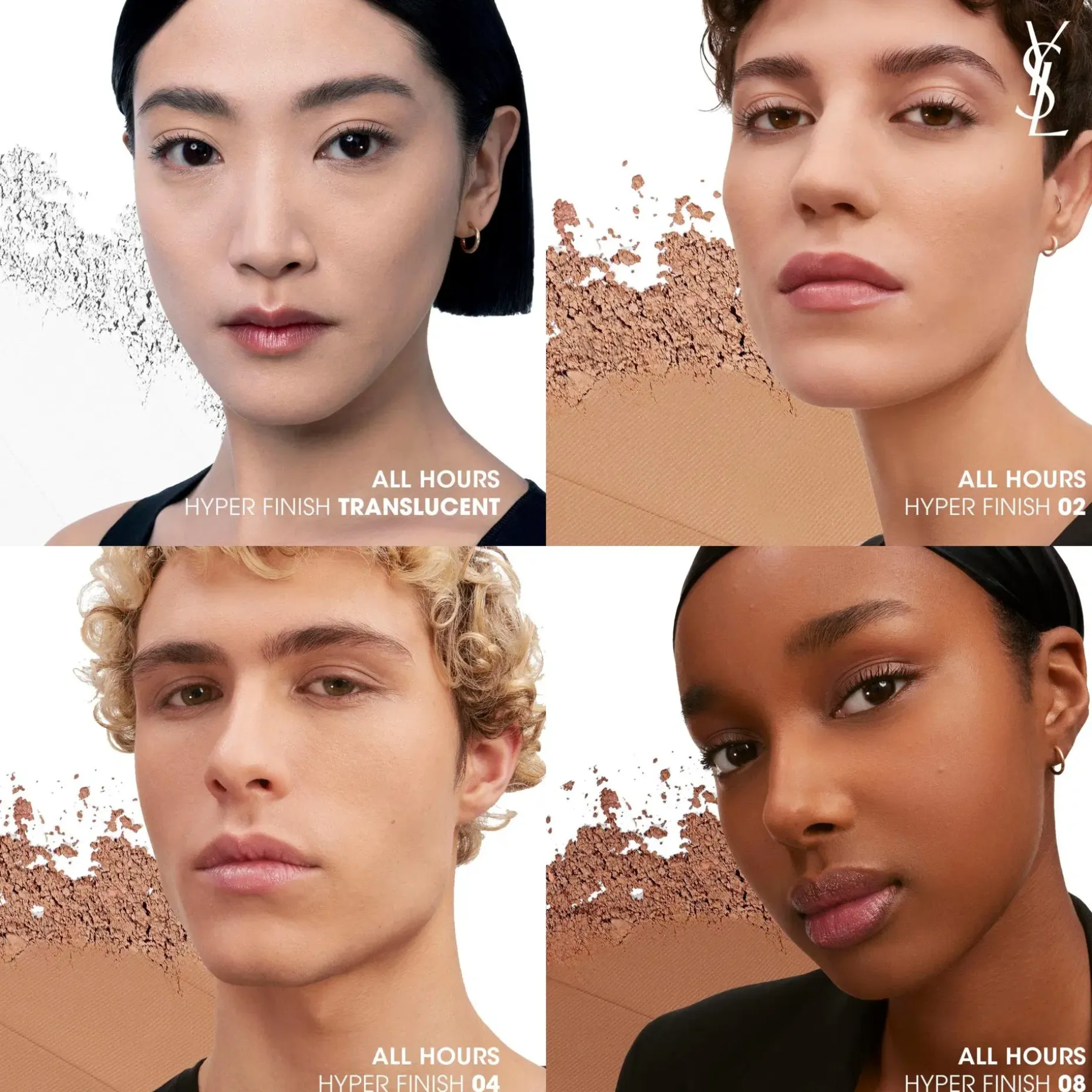 Saatavana jopa 11 sävyä.. All Hours Hyper Powder täydentää All Hours -tuotesarjaa, joka sisältää All Hours Hyper Bronze -aurinkopuuterin, All Hours Foundation -meikkivoiteen ja All Hours Precise Angles Concealer -peitevoiteen. Tämä sävy vastaa entisen All Hours Setting Powder -puuterin sävyä B70.