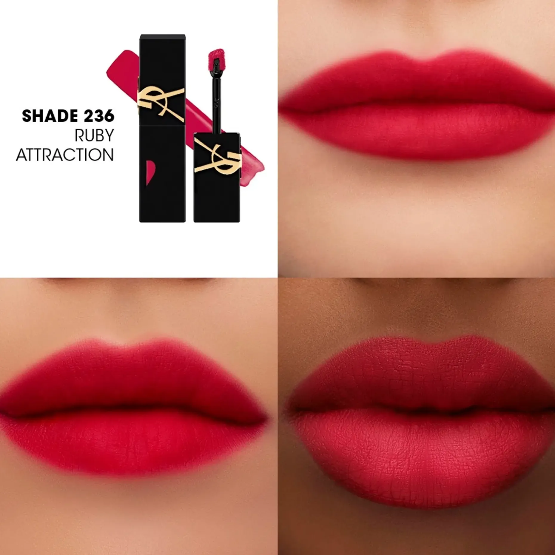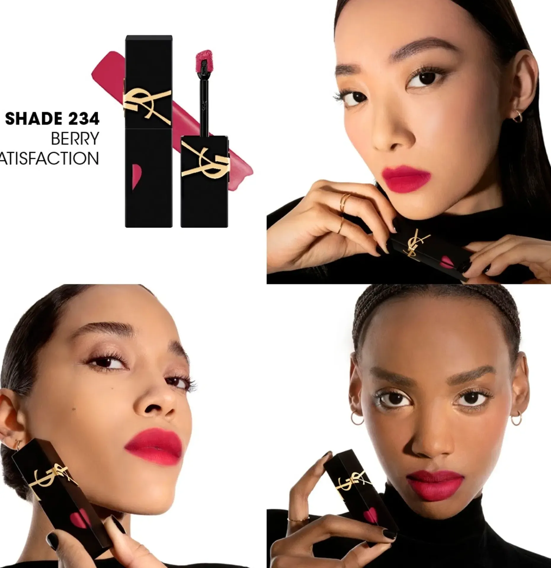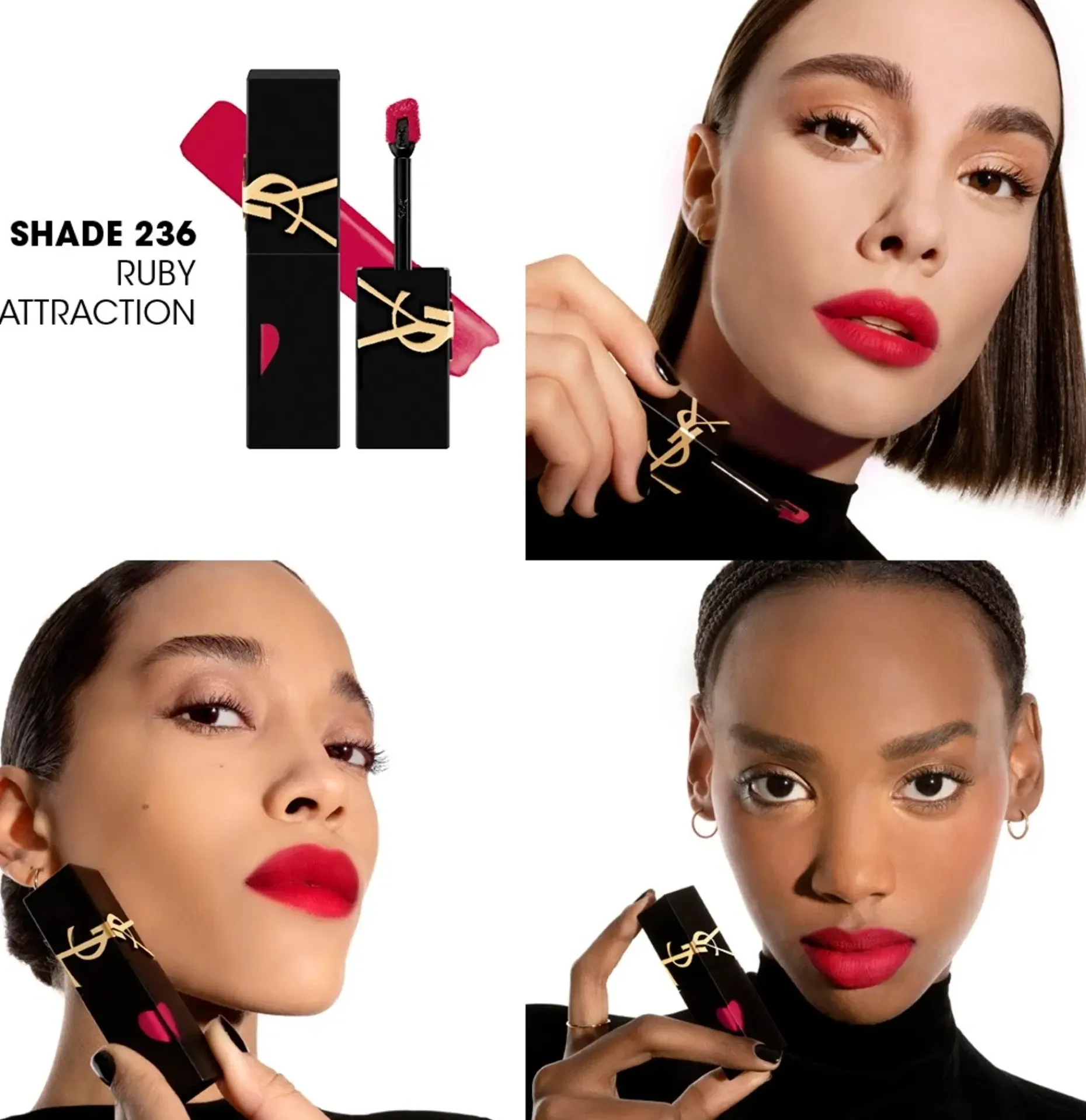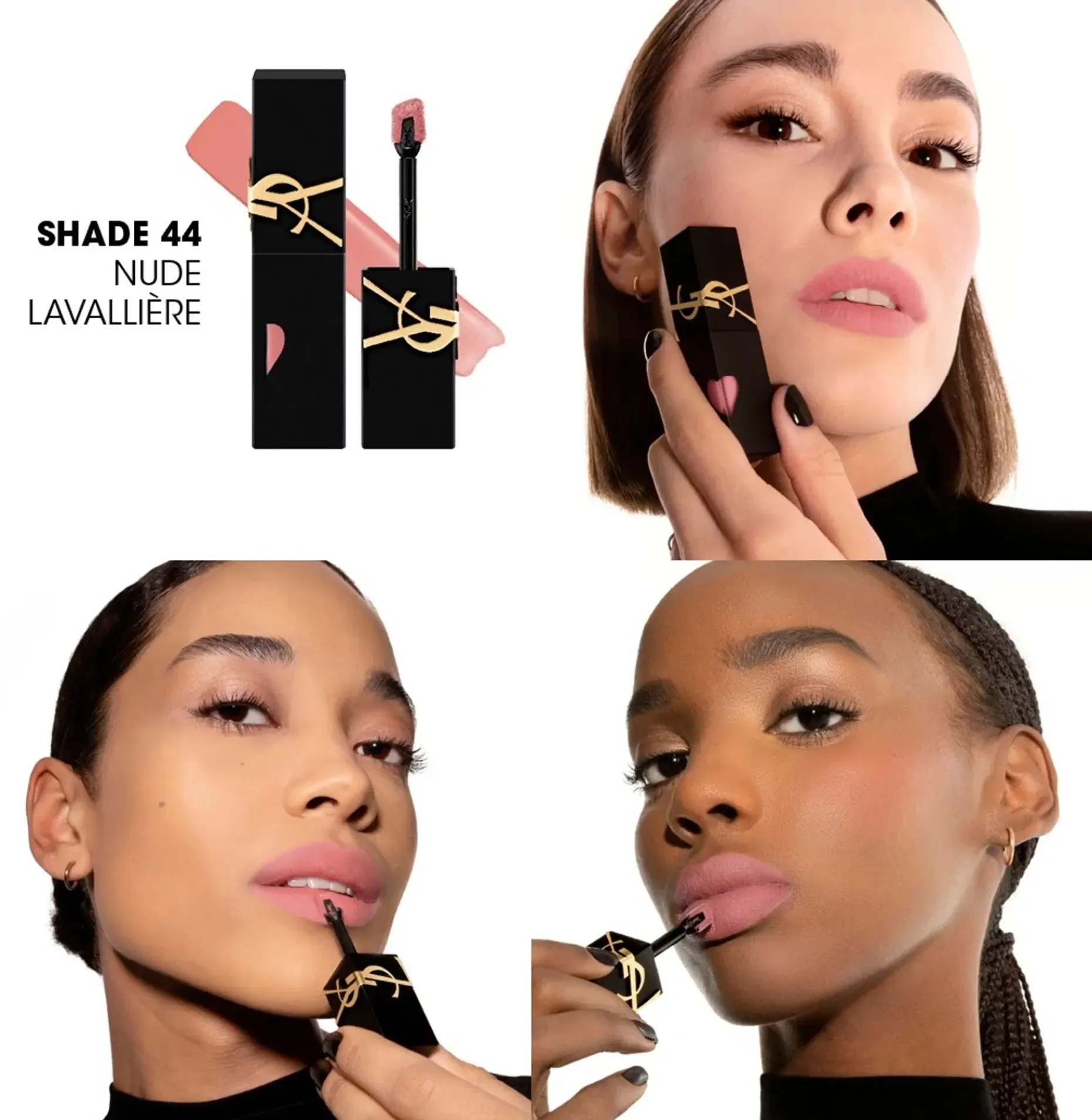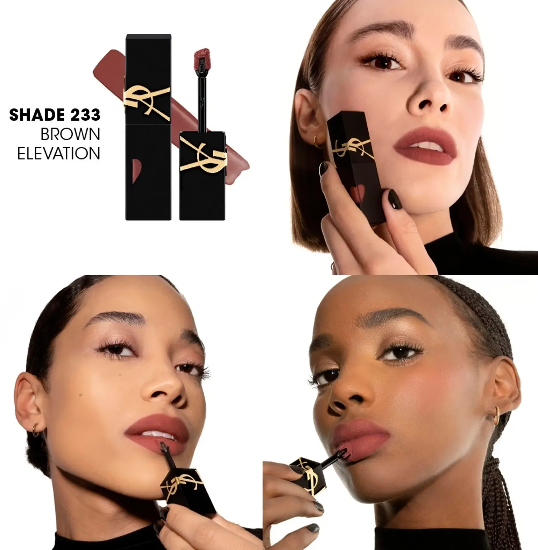 YSL THE INKS – NESTEMÄISET HUULIPUNAT UUDELLEENMÄÄRITELTYNÄ YSL THE INKS määrittelee nestemäiset huulipunat uudelleen ja tarjoaa parhaan valinnan THE INKS BLURin, pehmeän samettisen mattapinnan, ja THE INKS VINYLn, erittäin kiiltävän pinnan, välillä. THE INKS BLUR on häivytetty mattahuulipuna, joka luo utuisen meikkituloksen. Jopa 12 tunnin kesto* ja jopa 24 tunnin kosteutus* antavat paljaan ihon tunteen. Kermainen koostumus sulautuu huulille tahmaamatta. *Kuluttajatesti 134 naisella HOITAVIA AINESOSIA SISÄLTÄVÄ KOOSTUMUS 70 % hoitavaa koostumusta, joka on rikastettu kaktusviikunalla ja tuberosauutteella Ourika Community Garden -puutarhastamme. EDUT Jopa 12 tunnin kesto* Jopa 24 tunnin kosteutus* 70 % hoitava koostumus *Kuluttajatesti 134 naisella TULOS Utuinen pinta ja eloisa värintoisto. Huulet näyttävät täyteläisemmiltä ja juonteet vähemmän näkyviltä. LEVITYSVINKKEJÄ Määrittele huulten ääriviivat applikaattorin pyöristetyillä reunoilla utuisen tarkkuuden saavuttamiseksi. Levitä yksi kerros huulten keskelle applikaattorin terävällä kärjellä saadaksesi parhaan väritarkkuuden. Harjaa kohti ulkoreunoja kevyellä liukuvalla liikkeellä.