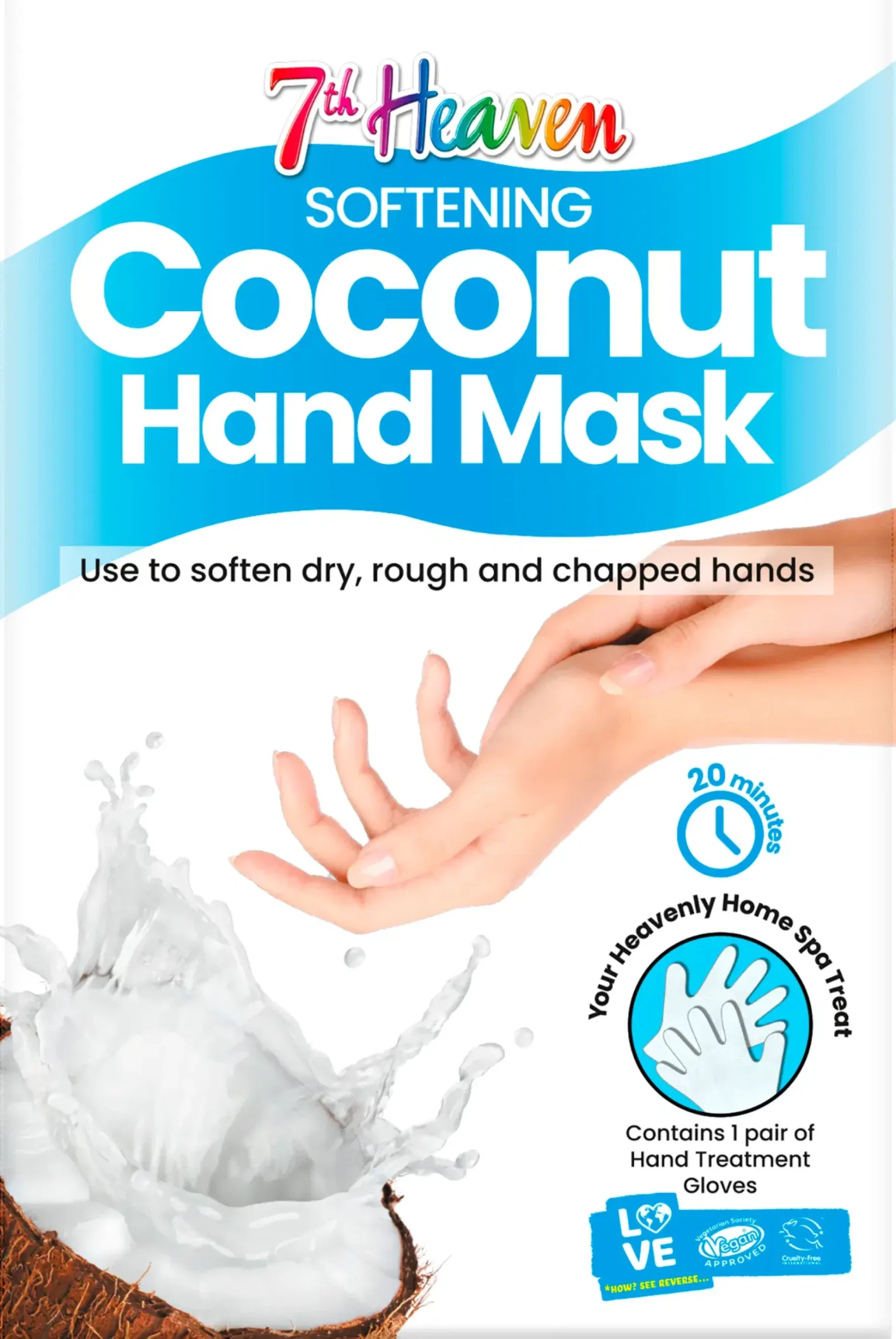 Puhdista ja kuivaa kädet. Sujauta hanskat käsiin ja rentoudu 15-20 min. Poista ja hiero loppu naamio käsiin.