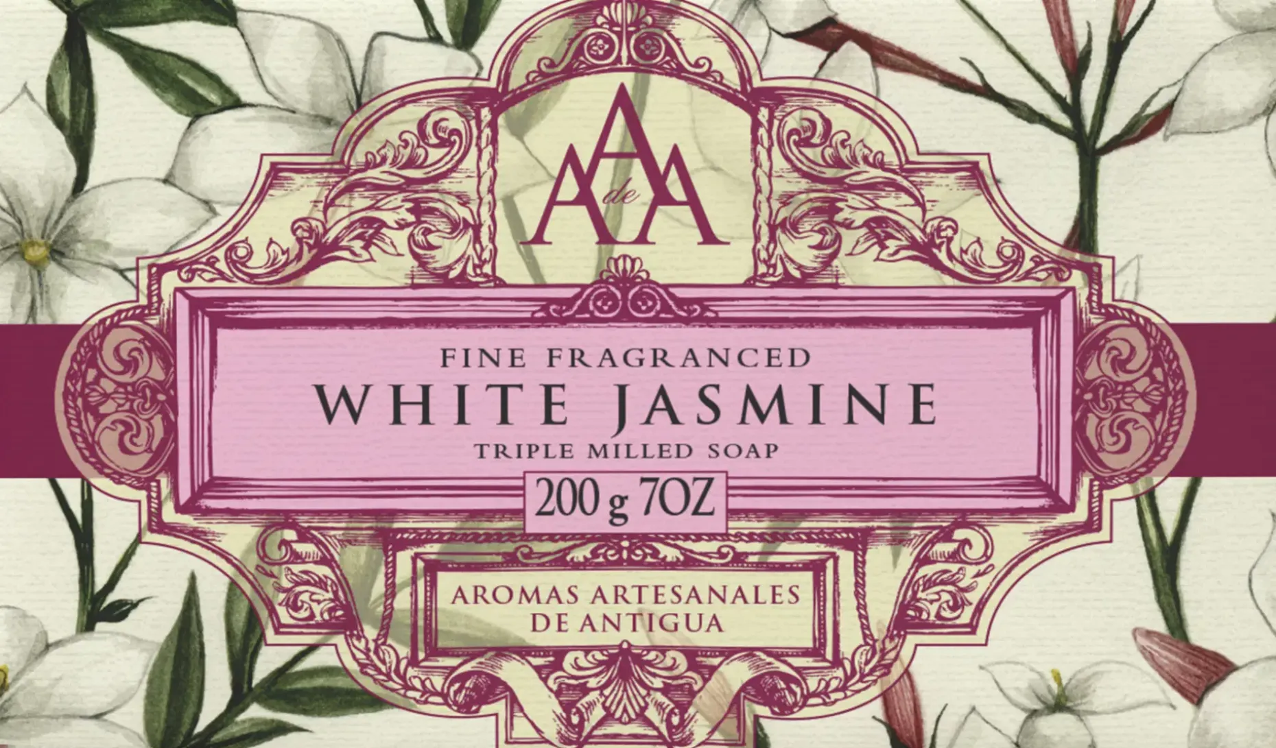 Jasmiini palasaippua. Ylellinen White Jasmine on keväisen tuore ja raikas jasmiinituoksu täydennettynä hyasintilla ja liljalla.