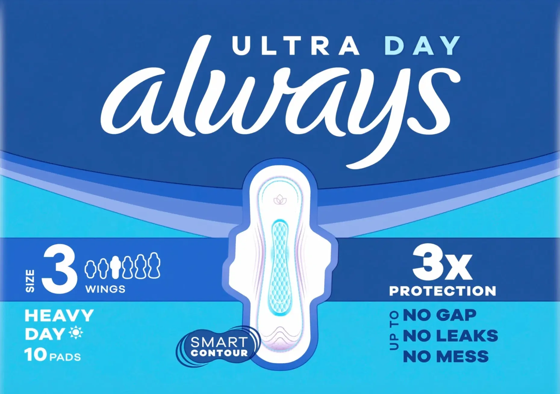 Älä tyydy vähempään kuin kolminkertaiseen suojaan Always Ultra Long Plus -siteillä (koko 3). Always-siteiden InstantDry-teknologia imee nesteet sekunneissa ja LeakGuard-tekniikka auttaa ehkäisemään ohivuotoja. ComfortFit-ominaisuus varmistaa, että side pysyy paikallaan ja myötäilee liikkeitäsi. Sen ainutlaatuiset ComfortLock-siivekkeet auttavat pitämään siteen paikallaan kaikentyyppisissä alusvaatteissa (vrt. edelliseen tuotteeseen). Jos kaipaat lisäsuojaa yöllä, kokeile Always Night -sidettä. Skin Health Alliancen dermatologisesti hyväksymä.