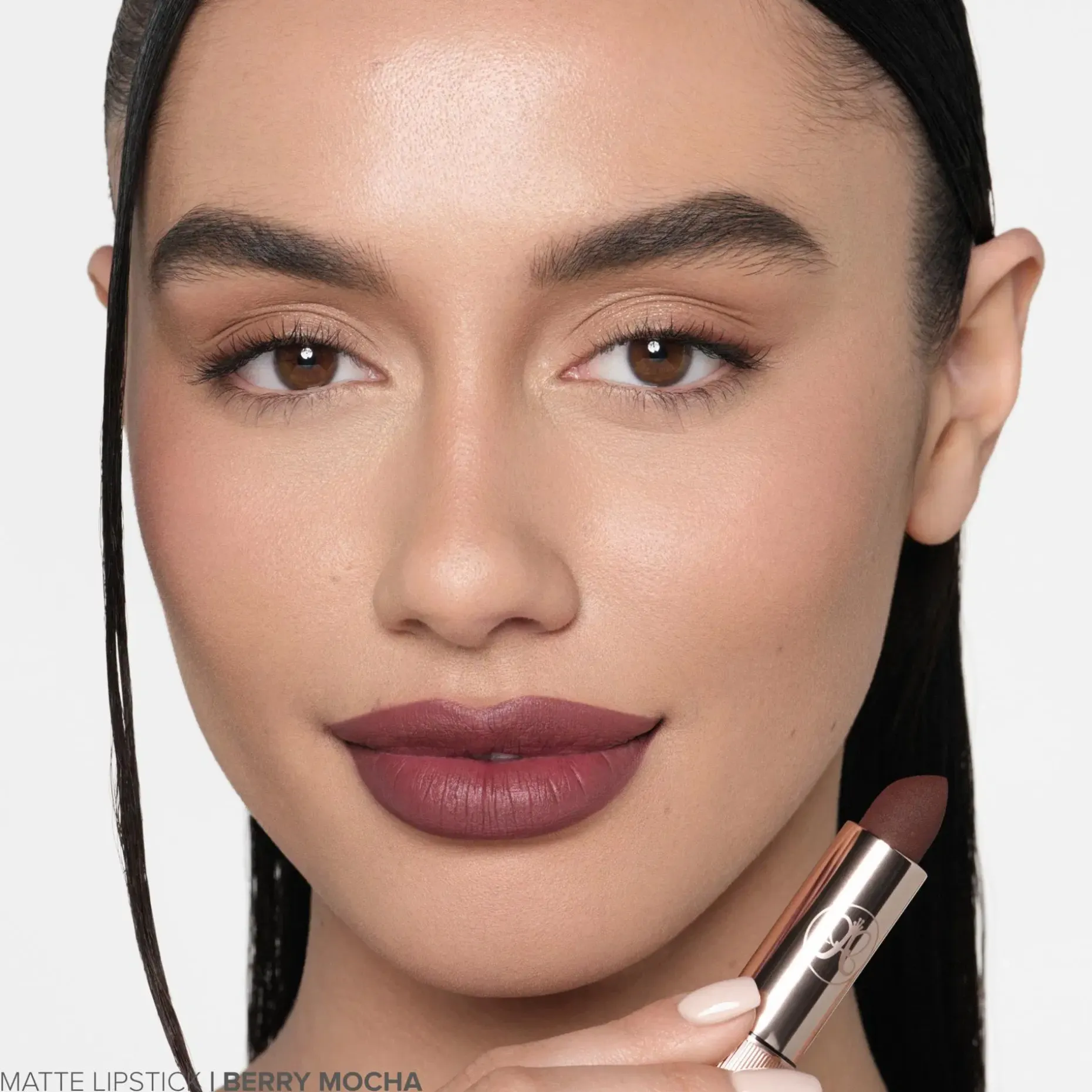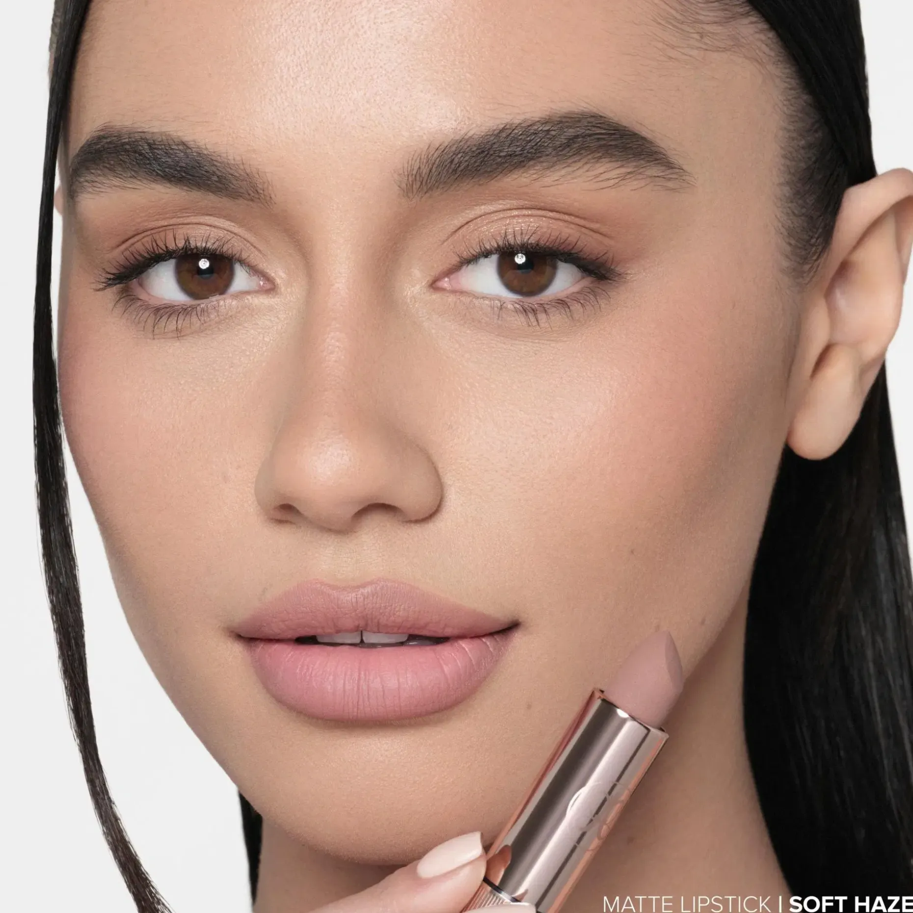 Matte & Satin Lipstick on kaikkea, mitä huulipunalta voi toivoa: upea pigmentti ja uskomattoman tasainen levittyvyys – vain yhdellä vedolla. Tähän innovatiiviseen koostumukseen on helppo rakastua: intensiivinen väri, ylellinen tuntuma ja kaksi samettisen pehmeää, höyhenenkevyttä lopputulosta, jotka sopivat kaikkiin lookkeihin aamusta iltaan. Ammattimaisen tarkka kärki takaa täydellisen tasaisen ja nopean värin levityksen – luonnollisesta lookista glam-tyyliin. Kaunis, ruusukultainen pakkaus on näyttävä lisä meikkipussiin tai iltalaukkuun. Yhdistä Lip Liner -huultenrajauskynän kanssa ja viimeistele lopputulos.