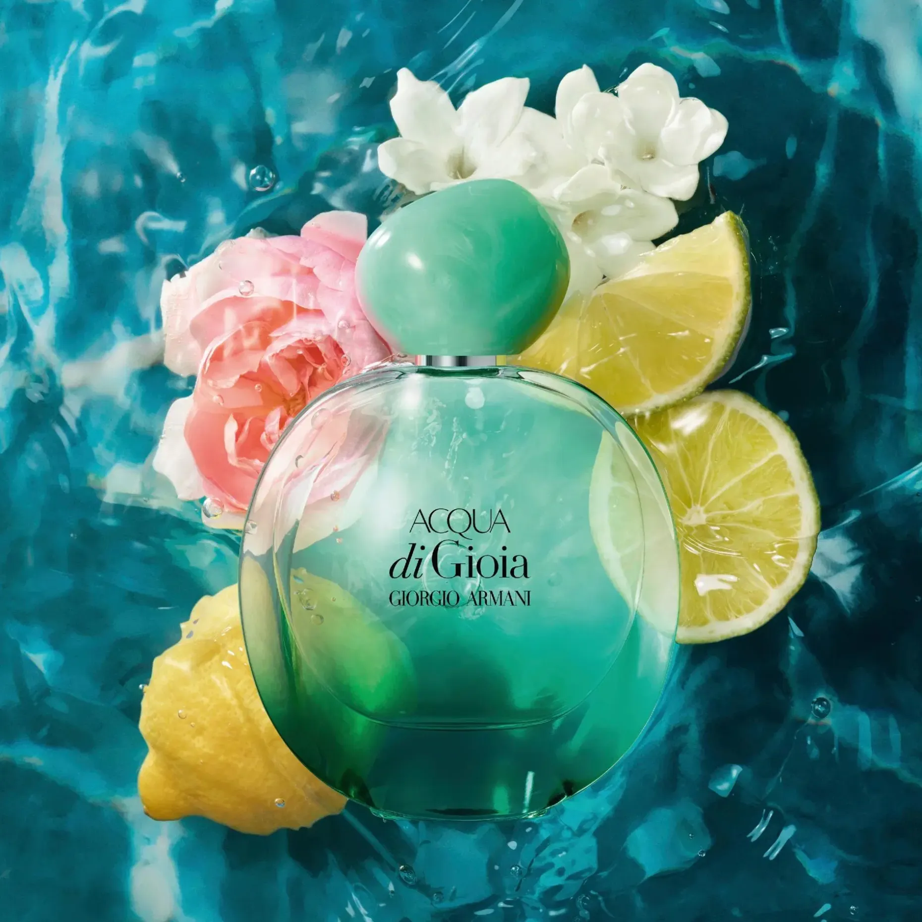 Uuden viehättävän pullon muoto on kehitetty ikonisen pyöreästä ACQUA DI GIOIA -pullon muodosta. Sen orgaaninen muoto on nyt puettu asteittaisiin vihreän sävyihin, jotka muuttuvat läpikuultavasta vaaleasta mintusta pullon yläosasta syvempään, vaalean täyteläiseen turkoosiin pohjassa.