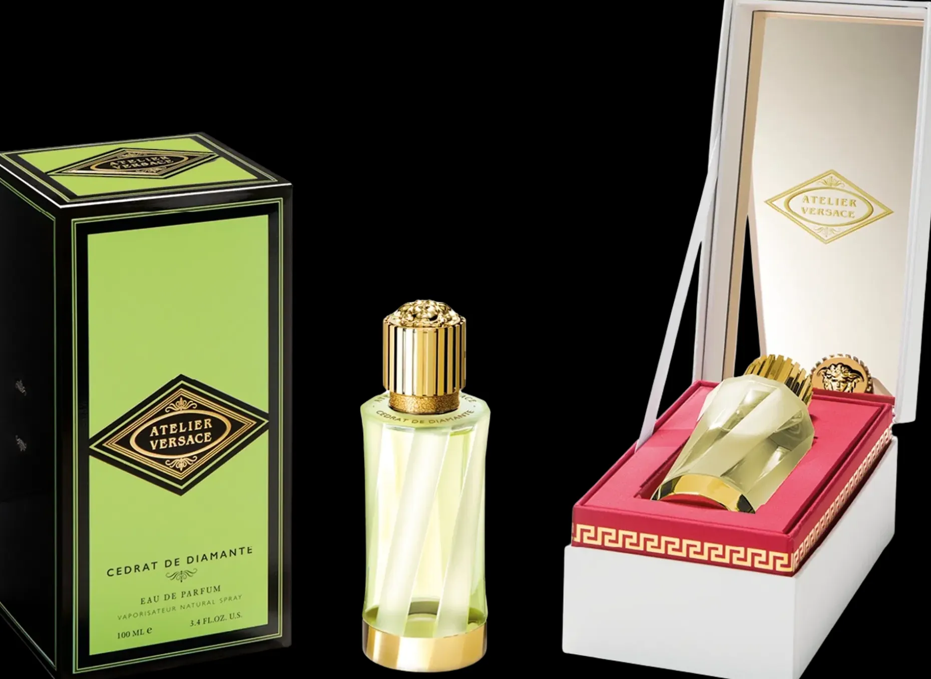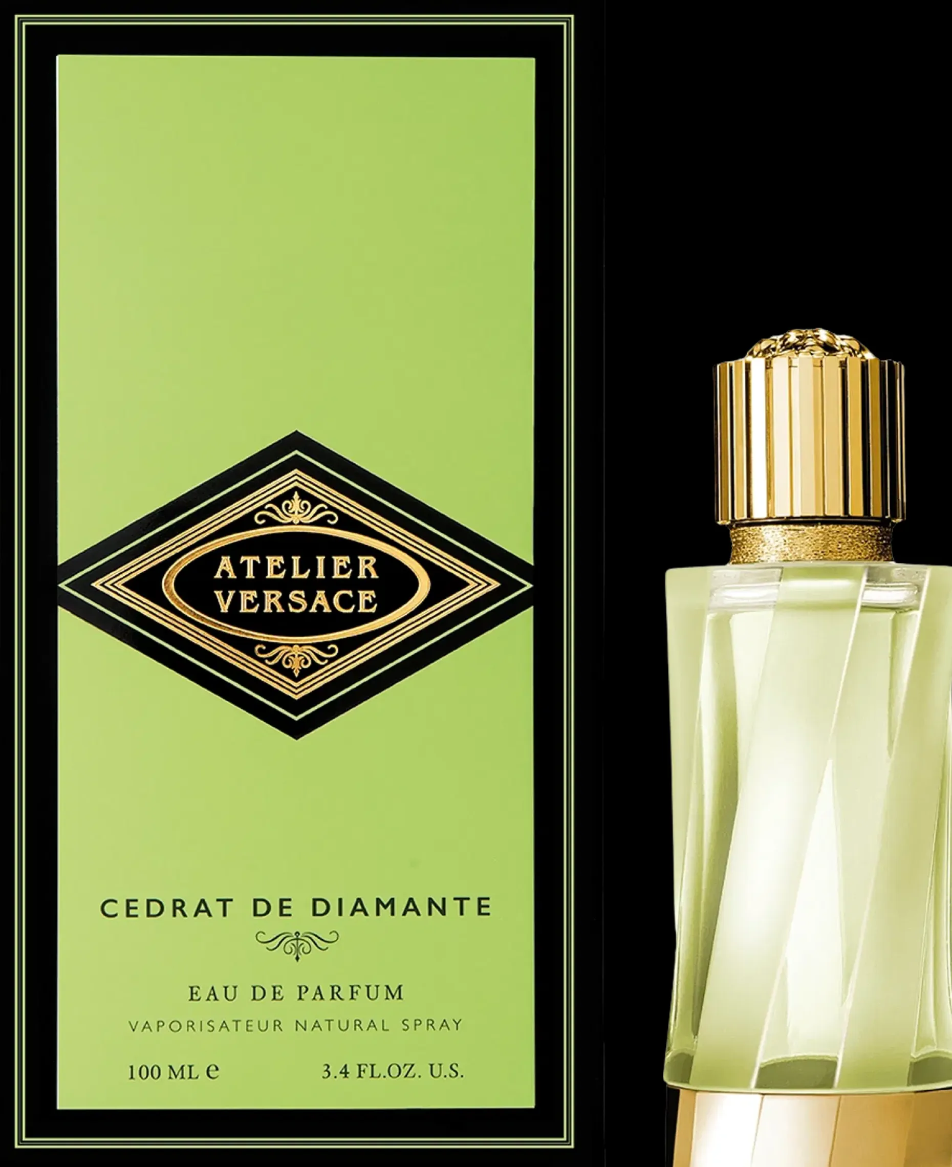 Cédrat de Diamante hehkuu italialaisen sitruunan raikkautta, joka on perinteisiä sitrushedelmäaromeja kukkivampi. Välimerestä inspiroitunut tuoksu sisältää pinkin greipin ja luonnollisten puiden sävyjä. Tuoksu on suunnitellut parfyymintekijä Marie Salamagne, joka pyrkii ilmentämään taiteellisuutta käsityössään. Cédrat de Diamanten eloisuutta korostavat aromaattinen setripuu ja vetiveri. Muotoiltu lasipullo on kaiverrettu tuoksun nimellä, ja pakkauksessa on Atelier Versace -logo sisäpuoleisessa peilissä.