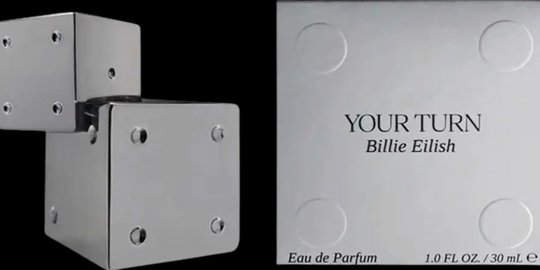 Your Turn -tuoksun pullo on saanut inspiraationsa Billien kiinnostuksesta sisustukseen ja itseilmaisuun. Design esittää kahta päällekkäistä noppaa, joissa on kohokuvioidut pisteet. Pullon tyylipuhtaat ja minimalistiset linjat sekä hopeakromiviimeistely tekevät siitä nykyaikaisen taideteoksen, joka antaa sekä leikkisän että jännittävän vaikutelman ja heijastaa tuoksun rohkean vangitsevaa luonnetta.