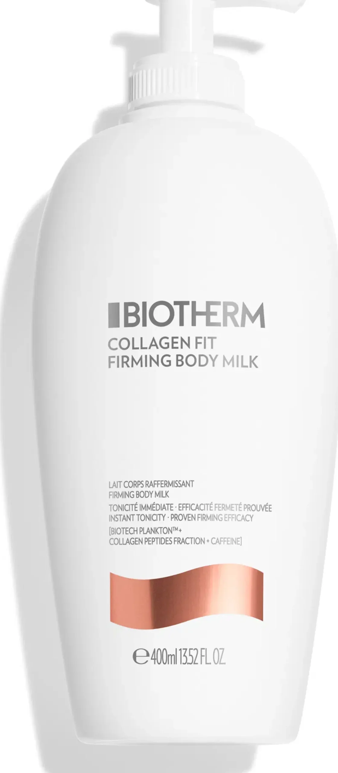 Collagen Fit Firming Body Milk -maitomainen vartalovoide antaa välittömästi kimmoisuutta ja selkeästi kiinteyttäviä vaikutuksia. Tämä nopeasti imeytyvä maitomainen vartalovoide antaa iholle kimmoisuutta, kiinteyttä ja kosteutusta, jotta iho näyttäisi kimmoisalta ja elinvoimaiselta. Iän myötä iho menettää kiinteyttä ja joustavuuttaan, ja vartalon ääriviivat ovat vähemmän selkeät. Collagen Fit Firming Body Milk -vartalovoide toimii vastapainona tälle, sillä sen koostumus auttaa ihoa näyttämään kiinteämmältä, kimmoisammalta ja elinvoimaisemmalta. Hienovarainen vaniljan, mantelin ja bergamotin tuoksu tuo päivittäiseen vartalonhoitorutiiniin ylellisen kosketuksen, joka tekee siitä sekä tehokkaan että miellyttävän. Biotech Plankton™: Tämä Biothermin eksklusiivinen ainesosa sisältää runsaasti 35 ainetta ja auttaa tekemään ihostasi vahvemman ja kimmoisamman. Sisältää kollageenipeptidifraktioita, joissa on 2 kollageenin rakennuspalikkaa: Tripeptidi ja Tetrapeptidi. Kofeiini edistää ihon kiinteytymistä. Biotech Plankton + Kofeiini lisää NAD+:a, tärkeää energiamolekyyliä, +30%, mikä auttaa elvyttämään ihoa*. *In vitro -testi kollageenipeptidifraktioilla ja Biotech Plankton™:lla. Vahvistaa vartalon ihoa ensimmäisestä käyttökerrasta lähtien: +10% ihon kiinteyttä/kimmoisuutta* +38% kosteutusta** +33% sileämpi iho*** *Instrumentaalinen testi. **Instrumentaalinen testi. ***Kliininen testi 42 naisella 1 kuukauden kuluttua.