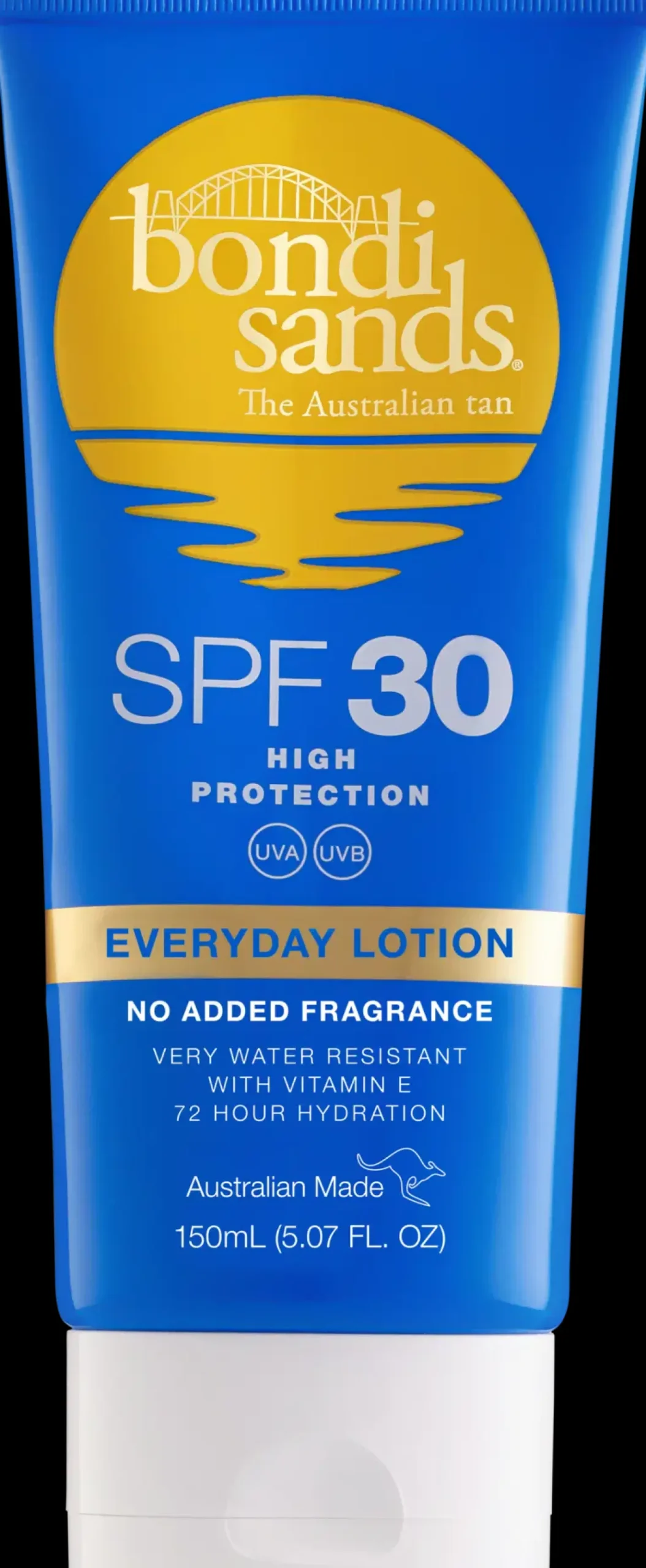 Kesä on täällä! Nauti aurinkoisesta päivästä Bondi Sandsin tavalla Everyday SPF 50+ -aurinkosuojavoiteellamme. UVA- ja UVB-suojan antava kevyt koostumus on rasvaton, nopeasti imeytyvä ja hellävarainen iholle. Vedenkestävä jopa neljä tuntia, joten voit astua aurinkoon luottavaisin mielin. Dermatologisesti testattu. Sopii herkälle iholle.