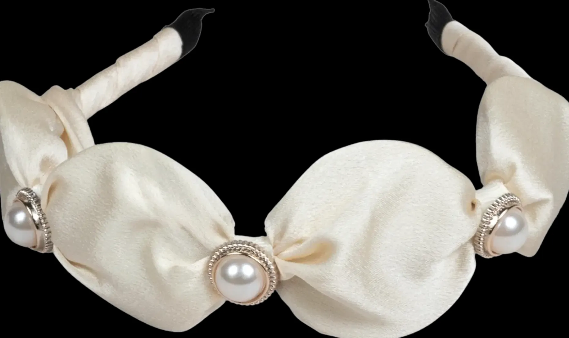 Valkoinen satiinipanta, jossa näyttävät helmikortisteet. Sopii hyvin juhlaan, sekä arkeen.