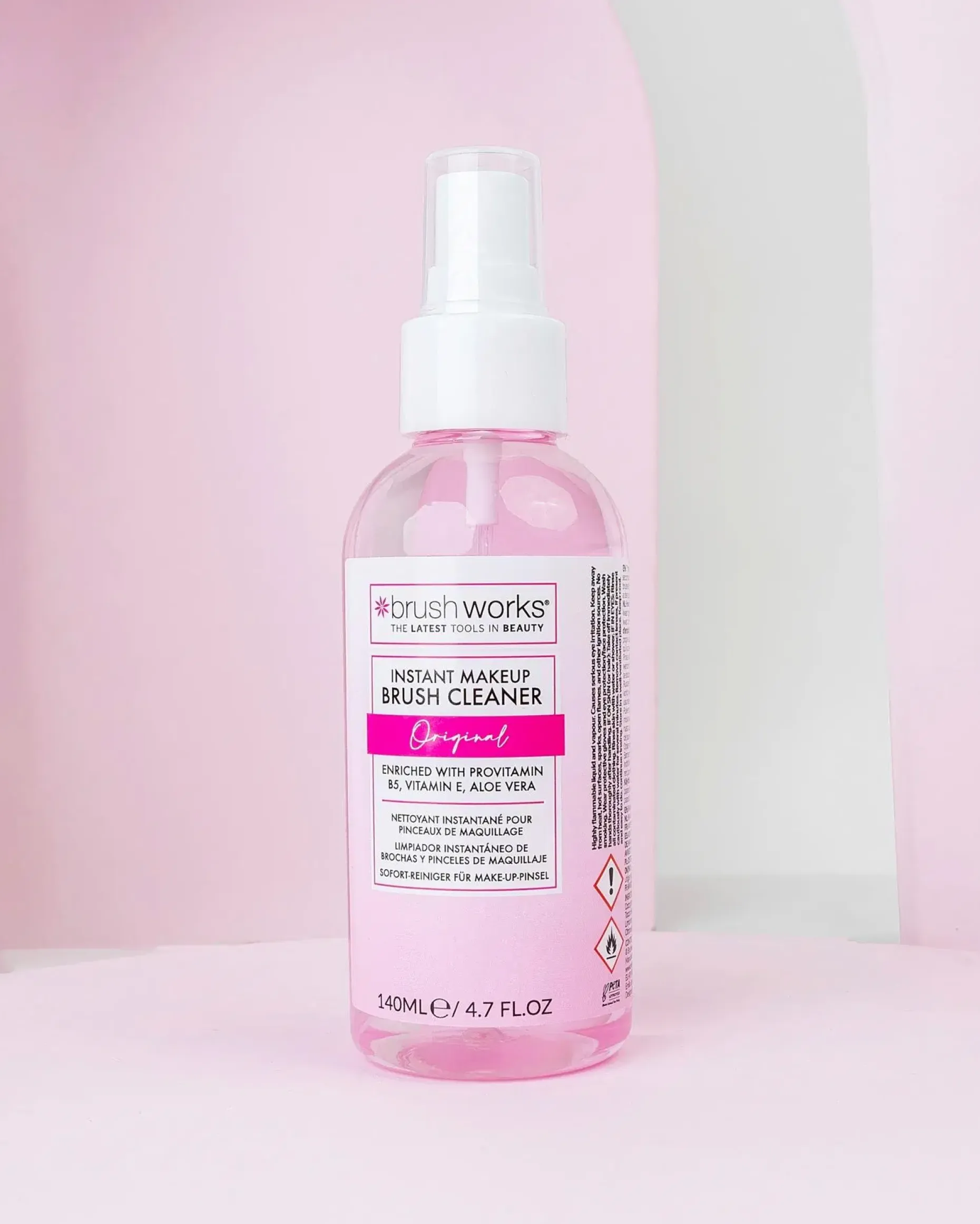 Nopea ja tehokas meikkisiveltimien puhdistusaine, joka on rikastettu E-vitamiinilla, aloe veralla ja Pro-vitamiini B5:llä. Puhdistaa siveltimet vaivattomasti ja poistaa niistä bakteerit, pölyn ja meikin sekunneissa, pitäen siveltimien harjakset parhaassa mahdollisessa kunnossa. Sopii synteettisille meikkisiveltimille. PETA-hyväksytty – eläinkokeeton ja vegaaninen.