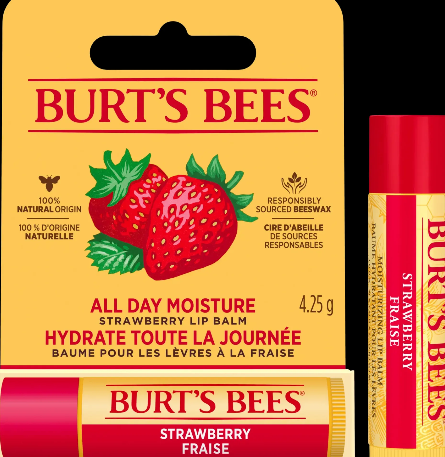 Burt’s Bees mansikan makuinen 100% luonnollinen hoitava huulirasva.