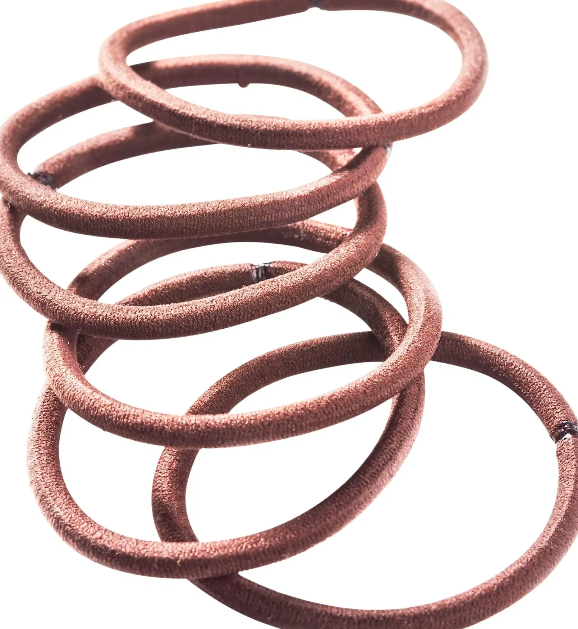 Pyöreät kumilenkit. 6 kpl. Väri: ruskea.