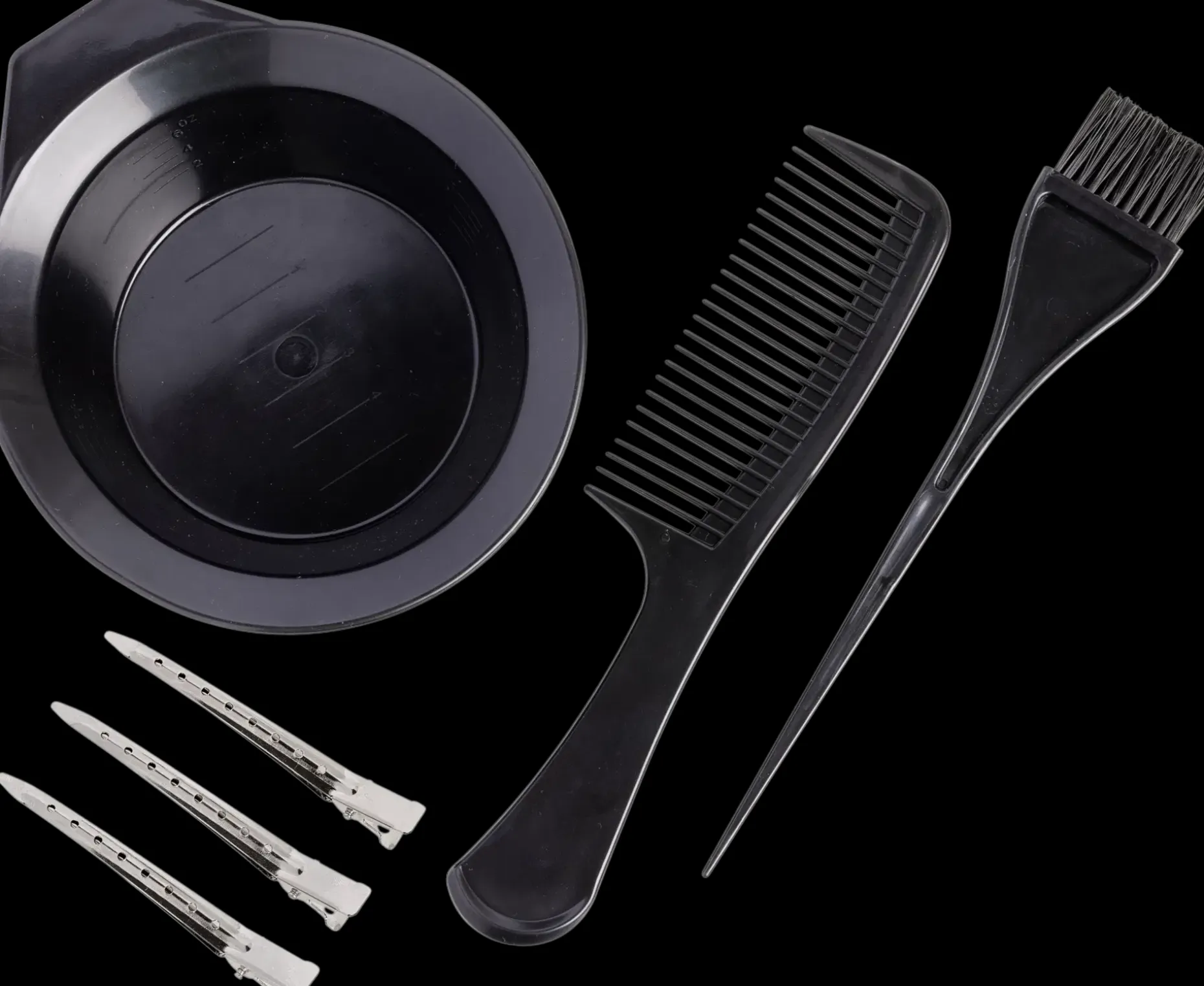 Sisältää astian hiusvärien sekoittamiseen, siveltimen hiusvärin levittämiseen, hiusklipsejä 3kpl hiusosioiden paikallaanpitämiseen/jaotteluun ja leveähampaiseen kamman hiusten kampaamiseen ja hiusvärin tasaiseen levittämiseen latvoihin asti.