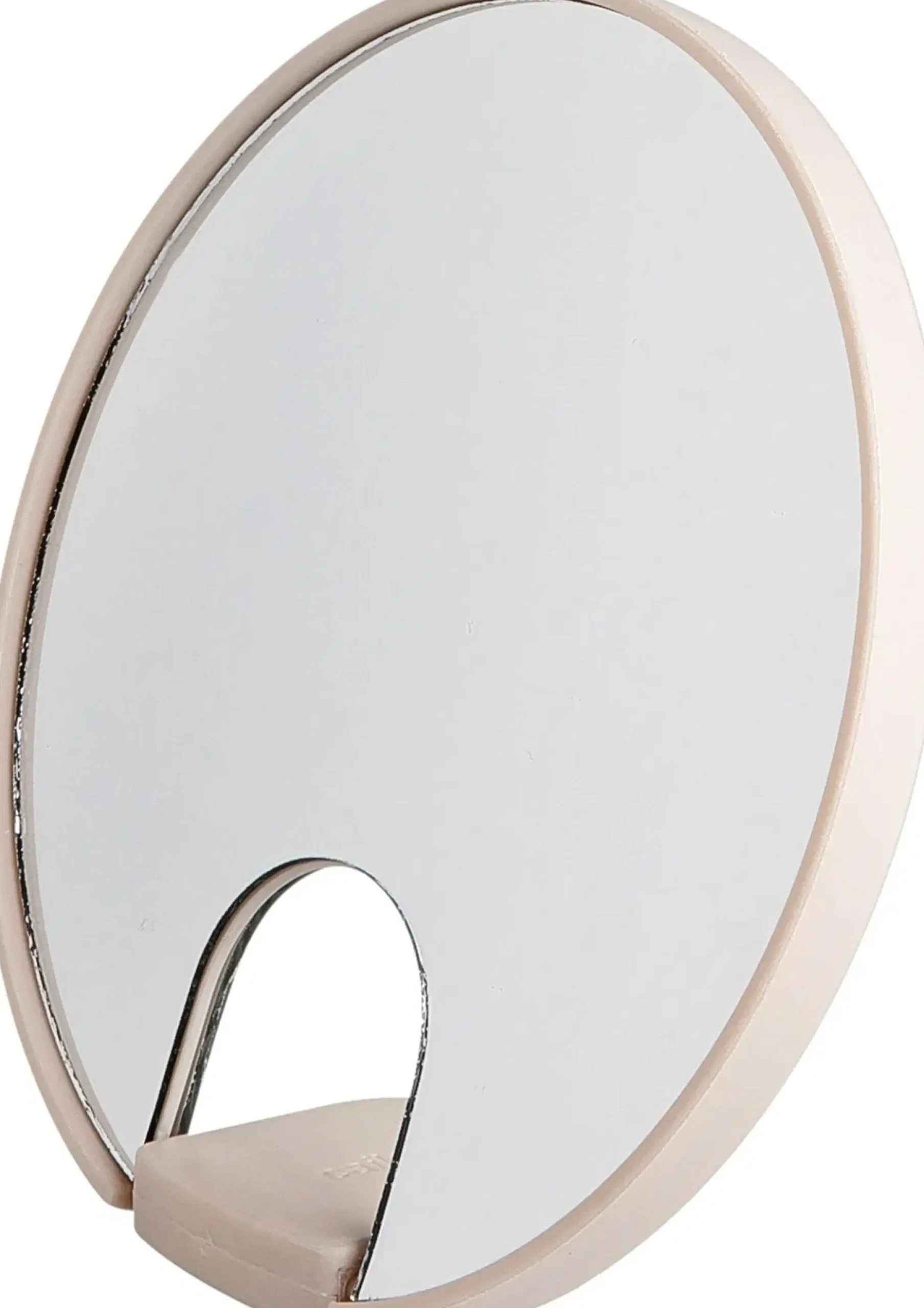 Cailap pieni kaksipuolinen käsipeili. Toinen puoli tavallinen ja toinen 2x suurentava. Toimii myös pöytäpeilinä. Halkaisija 94 mm. Väri: vaalea beige.