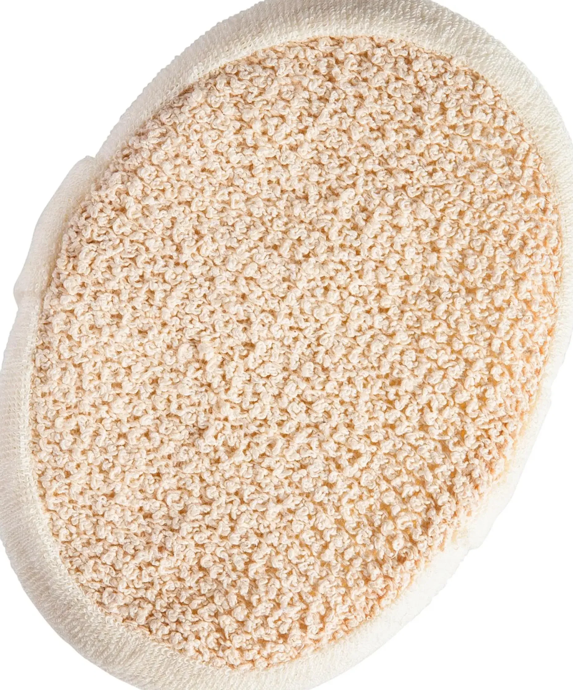 Paksu pesusieni vartalonpesuun. Sienen toisella puolella kätevä kuminauha jonka avulla sieni pysyy hyvin kädessä. Puuvillaa ja hamppua. Väri luonnonvaalea. Koko noin 10x15x5 cm.