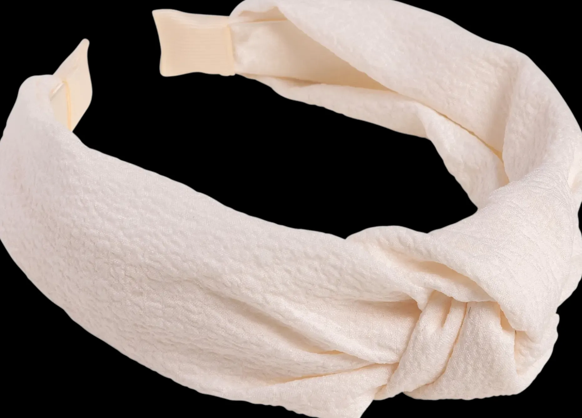 Ihastuttava solmuhiuspanta, kauniissa valkoisen sävyssä. Pannan leveys noin 5 cm.