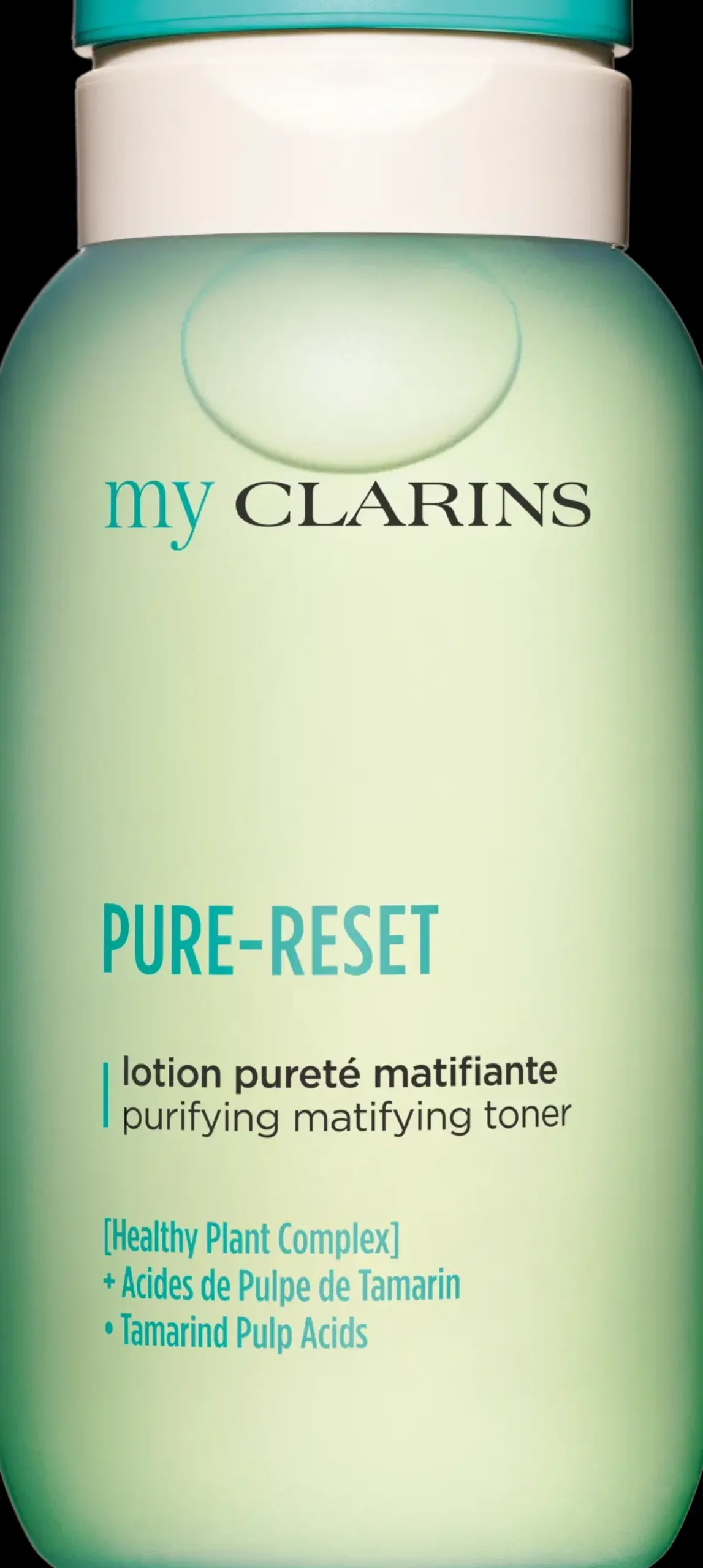 My Clarins PURE-RESET purifying matifying toner on syväpuhdistava kasvovesi, joka tasapainottaa ihoa ja tasoittaa sen pintaa. Kasvovesi taistelee epäpuhtauksia vastaan pitäen ihon mattapintaisena jo ensimmäisestä käyttökerrasta lähtien. Tuote sisältää tamarindin hedelmähappoa, joka kuorii hellävaraistesti ihon pintakerrosta.