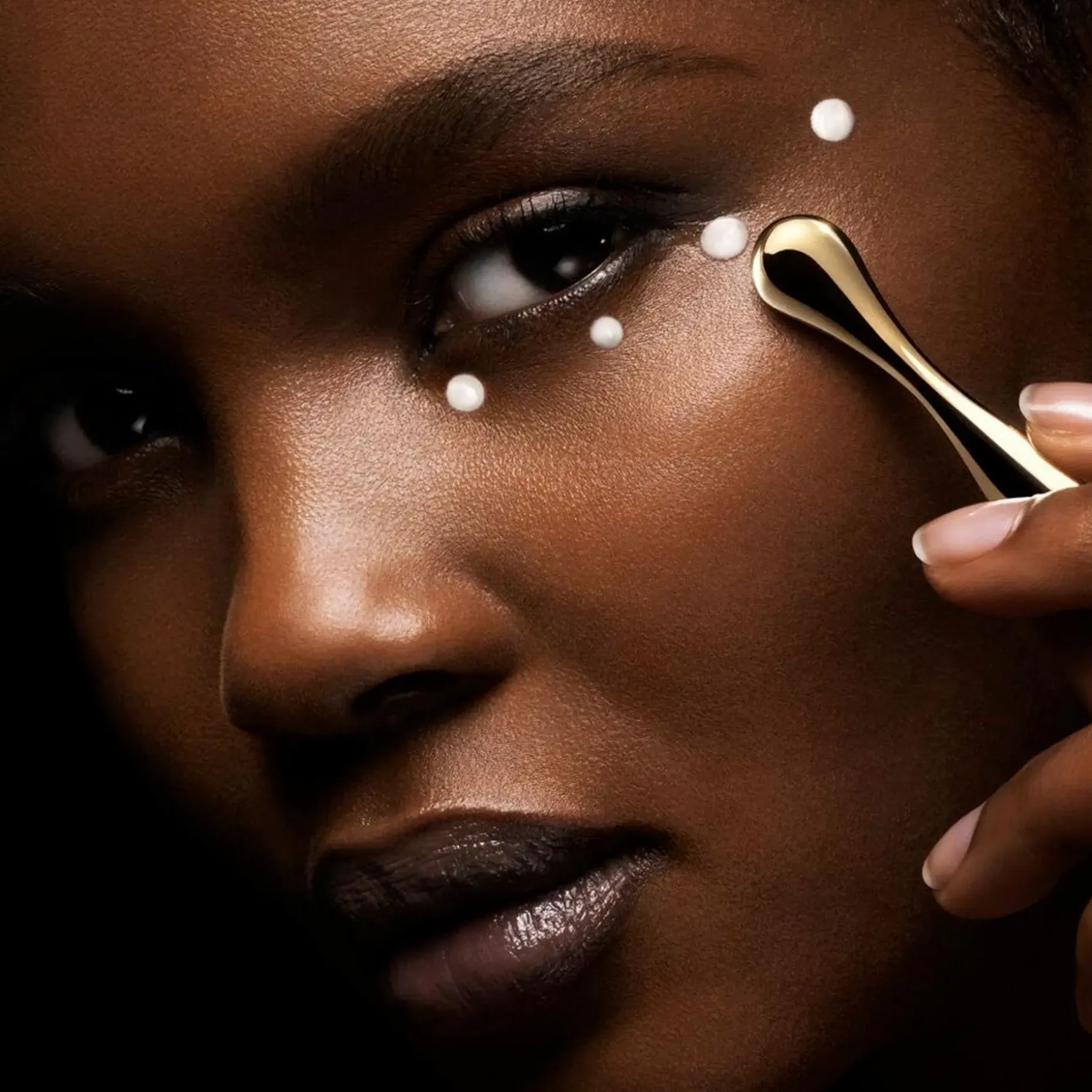 Poikkeuksellisen applikaattorin ansiosta voit tuplata vaikutuksen. Erityisesti tummien silmänalusien ja pussien kohdalla kylmä metallinen kärki toimii synergiassa hoidon kanssa minimoiden tummia silmänalusia ja turvotusta. Se sopii ihanteellisesti silmien ympärillä olevalle herkälle iholle. Levitä kevyesti painamalla kohti ohimoita.