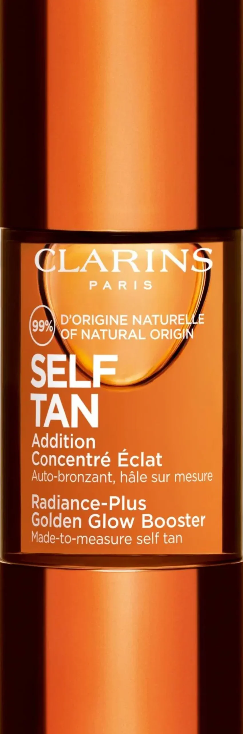 Clarins Self Tan Radiance-Plus Golden Glow Booster -itseruskettava tiiviste kasvoille. Tiivisteen avulla saat kauniin ja pitkäkestoisen päivetyksen ihollesi. Päivetyksen voimakkuutta on helppo itse säädellä sen mukaan, monta tippaa tiivistettä lisäät voiteen sekaan. Hajusteeton.