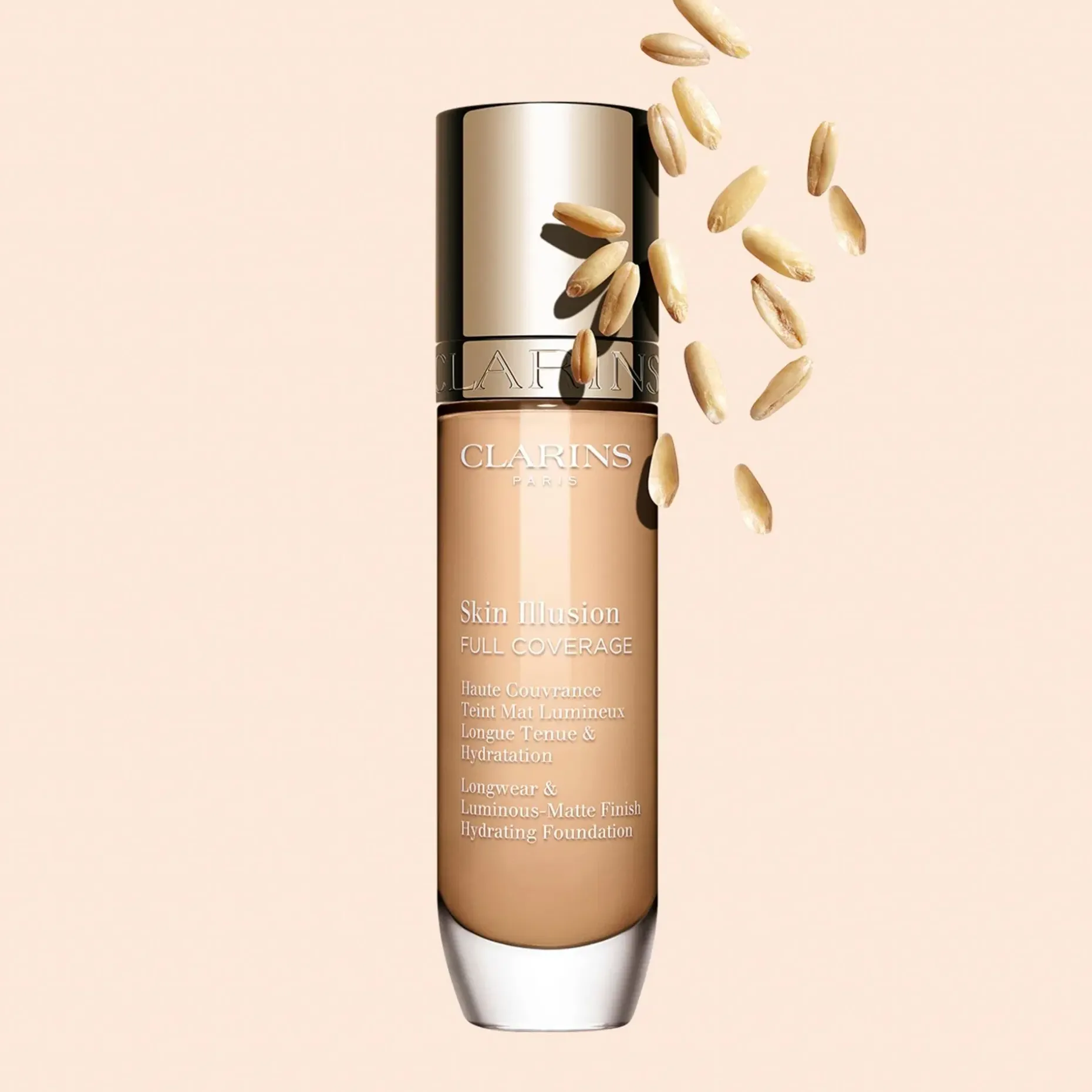 Skin Illusion Full Coverage on erittäin kevyt levittää! Se mukautuu kaikkiin levitystapoihin: siveltimellä – Clarins Flat Foundation Brush tai Multi-Use Foundation Brush -kauneussienellä tai jopa sormilla kevyin liikkein kasvojen keskeltä ulospäin.