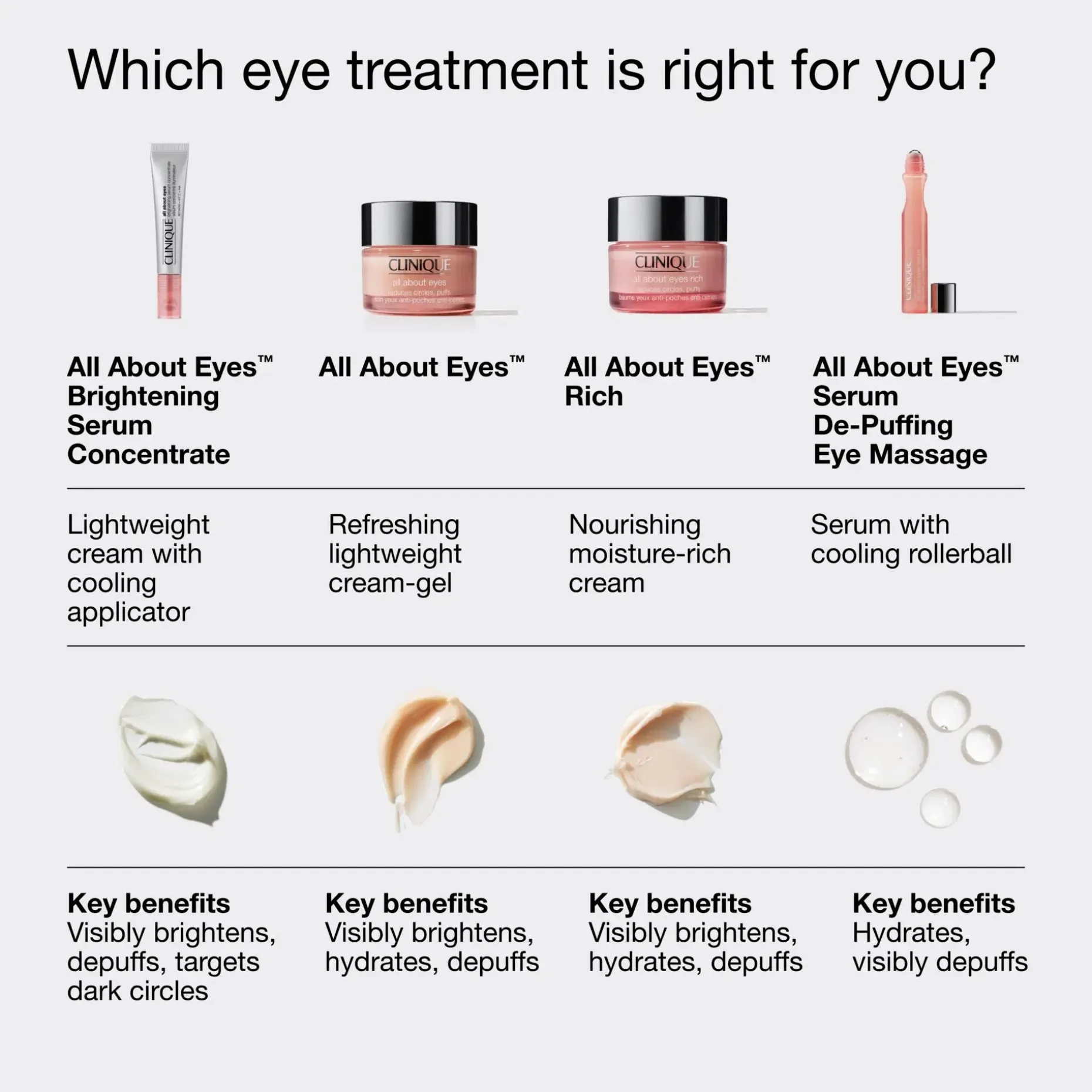 All About Eyes Brightening Serum Concentrate on tehokas silmänympärysseerumi, joka toimii nopeasti kirkastaen ja vähentäen tummuutta sekä turvotusta silmien ympärillä.