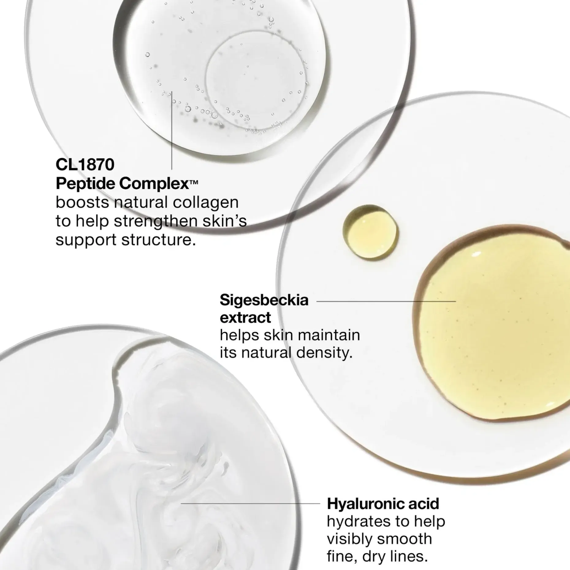 – CL1870 Peptide Complex™: Erityinen sekoitus peptidejä, jotka on suunniteltu torjumaan ryppyjen näkyvyyttä lisäämällä ihon luonnollista kollageenintuotantoa, mikä auttaa vahvistamaan ihon luonnollista tukirakennetta.
