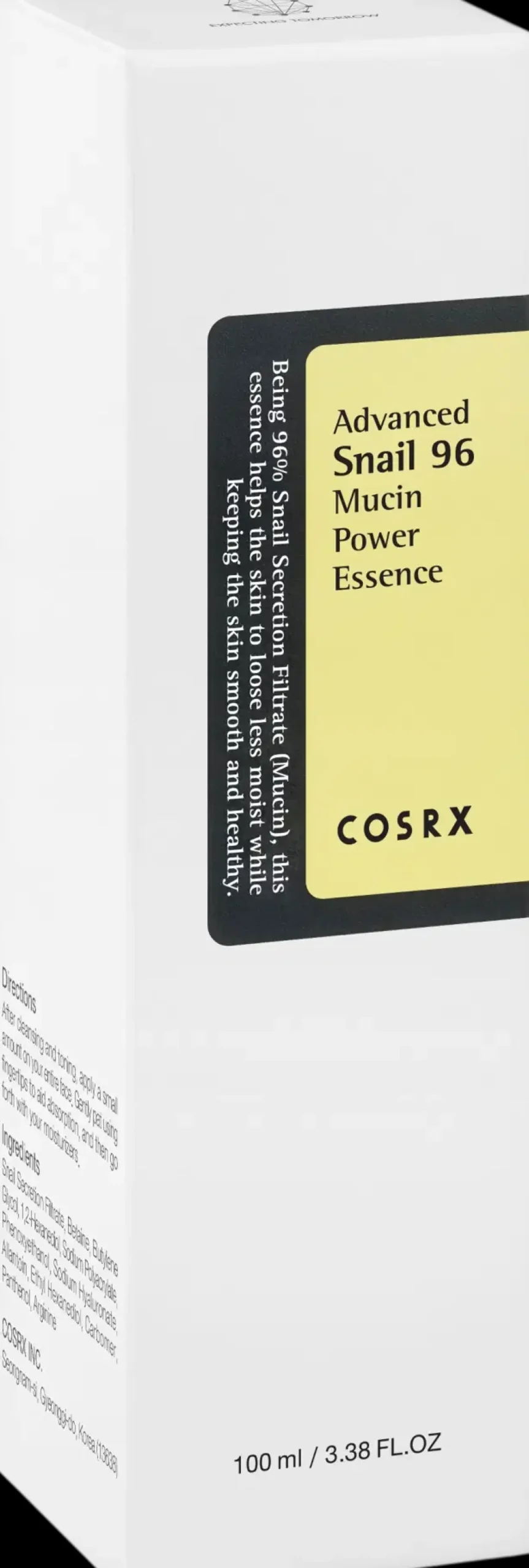 Snail Secretion Filtrate, Betaine, Butylene Glycol, 1, 2-Hexanediol, Ethyl Hexanediol, Phenoxyethanol, Sodium Polyacrylate, Sodium Hyaluronate, Allantoin, Carbomer, Panthenol, Arginine, Aqua/Watere