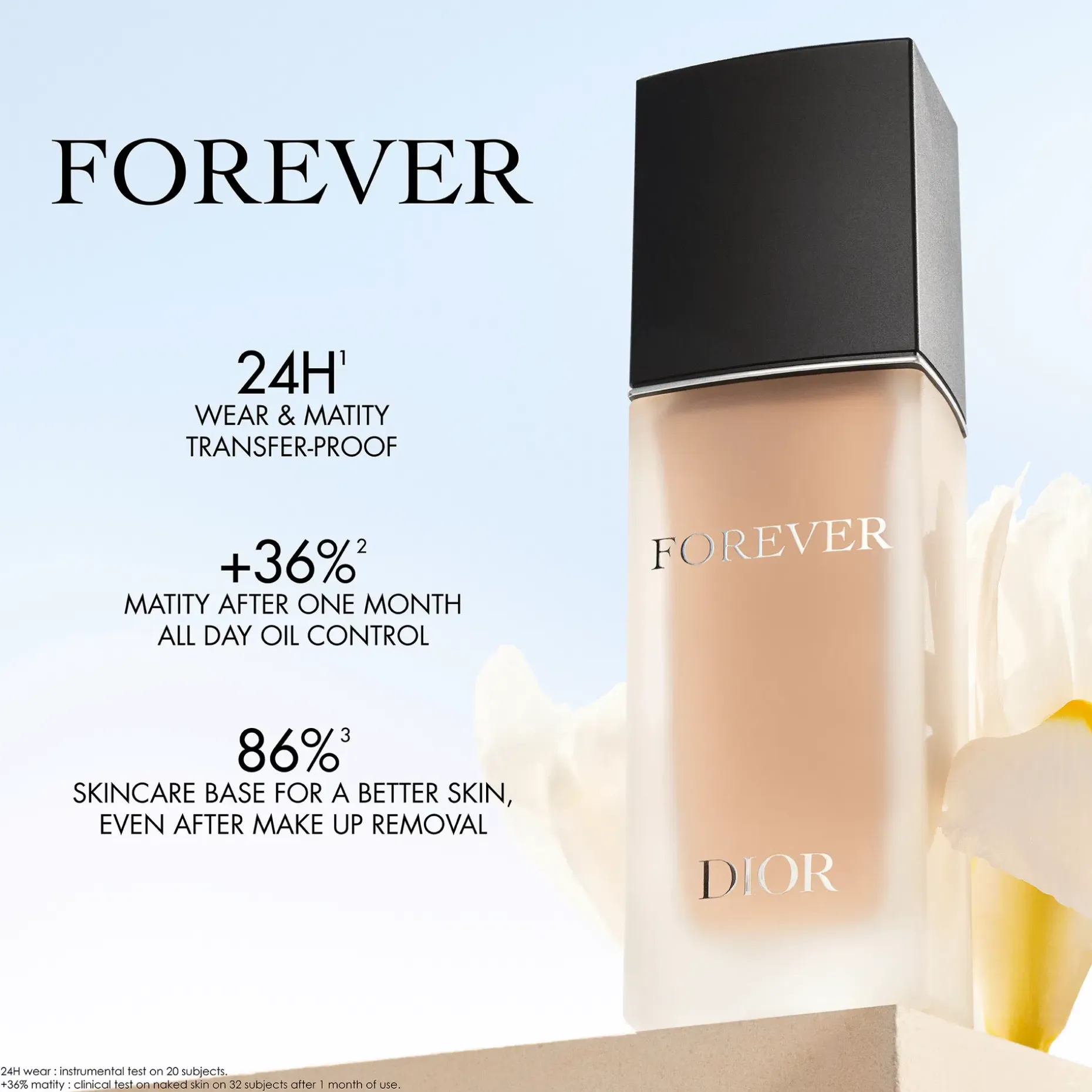 Kuumissa, kosteissa ja hikisissä olosuhteissa testattu Dior Forever -meikkivoide antaa luonnollisen matan lopputuloksen, joka säilyy kiiltämättömänä koko päivän. Se tasoittaa ihon sävyä, supistaa näkyvästi ihohuokosia ja silottaa ihoa.