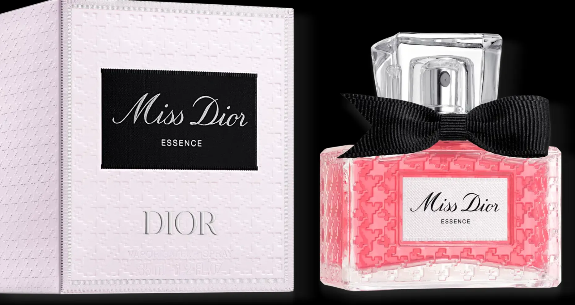 Miss Dior Essence pitää puolensa mutta pysyy uskollisena alkuperäiselle identiteetilleen ja tulkitsee uudelleen Christian Diorin vuonna 1948 suunnitteleman perinteisen pullon: Ranskassa valmistetun huurretun koiranhammaskuvion ja mustan teräväkulmaisen rusetin, joka koristaa arvokasta lasikorkkia.