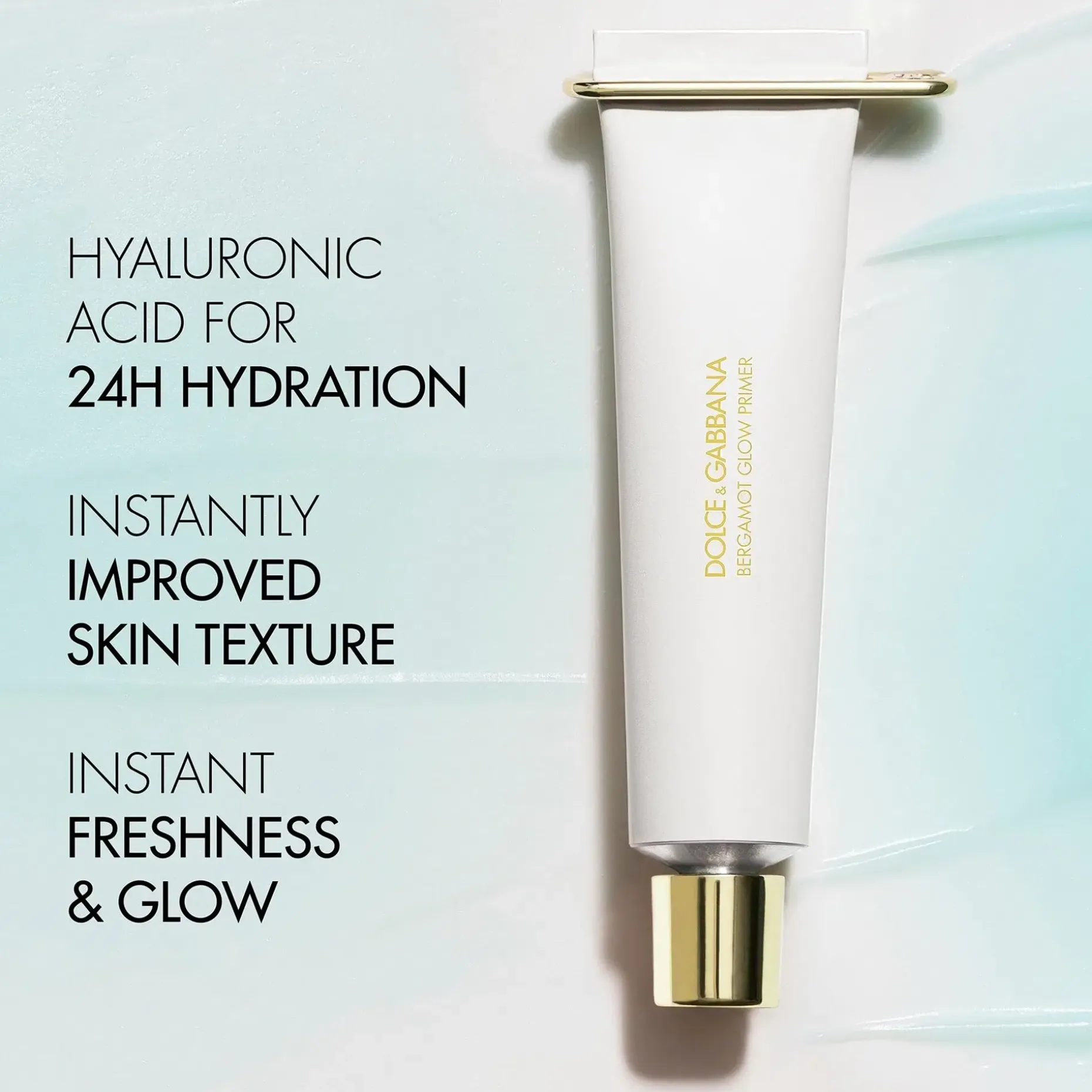 Virkistävä koostumus on täynnä hyaluronihappoa sen vahvojen kosteuttavien ominaisuuksien vuoksi sekä merivettä ja bergamottia, joiden molempien tiedetään parantavan ihon hehkua.