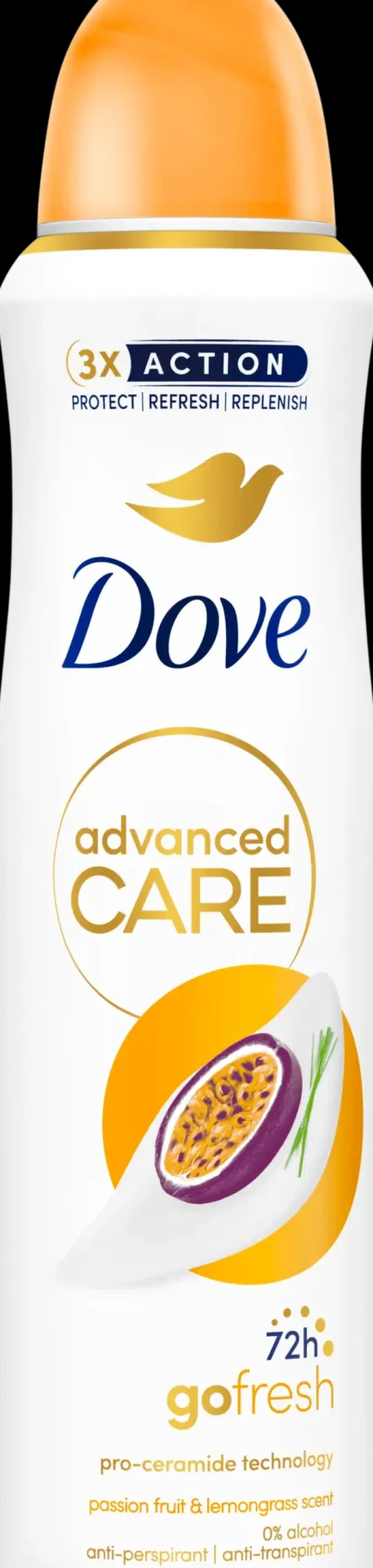 Dove 72h Advanced Care Passion Fruit antiperspirantti deodorantti spray on täysin alkoholiton ja sen koostumuksessa on mukana kosteusvoide, joten se auttaa pitämään ihon pehmeänä ja sileänä kosketukselle. Tämä Doven antiperspirantti spray tarjoaa helpotusta kainaloille, koska se auttaa vähentämään kainalokarvojen ajamisen aiheuttamaa ihoärsytystä. Anna hienovaraisen passiohedelmän ja raikkaan sitruunaruohon tuoksun valloittaa aistisi. Dove 72h Advanced Care Passion Fruit antiperspirantti deodorantti sisältää innovatiivisen Triple Moisturizing -teknologian. Se täydentää ja vahvistaa ihon luonnollista suojakerrosta lisäämällä keramiditasoja (jotka luonnollisesti vähenevät karvoja ajettaessa), auttaen ihoa palautumaan karvojen ajelun jälkeen. Antiperspirantti kuivuu nopeasti ja tarjoaa pitkäaikaisen suoja hikoilua vastaan. Hoidat siis kainaloitasi ja saat samalla tehokkaan hikoilusuojan, joka on lempeä iholle ja pitää hajun ja hien loitolla jopa 72 tunnin ajan. Antiperspiranttisuihkeen sisältämät kosteusvoiteet tehostavat ihosi omaa suojaa ja auttavat säilyttämään sen luontaisen kosteuden pintaa syvemmällä. Suihkuta tätä alkoholitonta antiperspiranttideodoranttia tasaisesti kumpaankin kainaloon. Suihkuta tarpeen mukaan lisää päivän aikana. Saat parhaan deodoranttisuojan, kun varmistat, että kainalot ovat puhtaat ja kuivat ennen antiperspirantin suihkuttamista. Hyvä idea on säilyttää deodoranttia kodin kylpyhuoneen lisäksi esimerkiksi työpaikalla työpöydän laatikossa. Laita myös yksi Doven antiperspiranttisuihkepullo mukaan kuntosalilaukkuusi, niin se on aina käsillä, kun tarvitset hyvää suojaa. Hoitava Dove 72h Advanced Care Passion Fruit antiperspirantti deodorantti on tehty suojaamaan tehokkaasti hikoilulta ja epämiellyttäviltä tuoksuilta. Dove ei testaa eläimillä ja on PETA Vegan -sertifioitu.