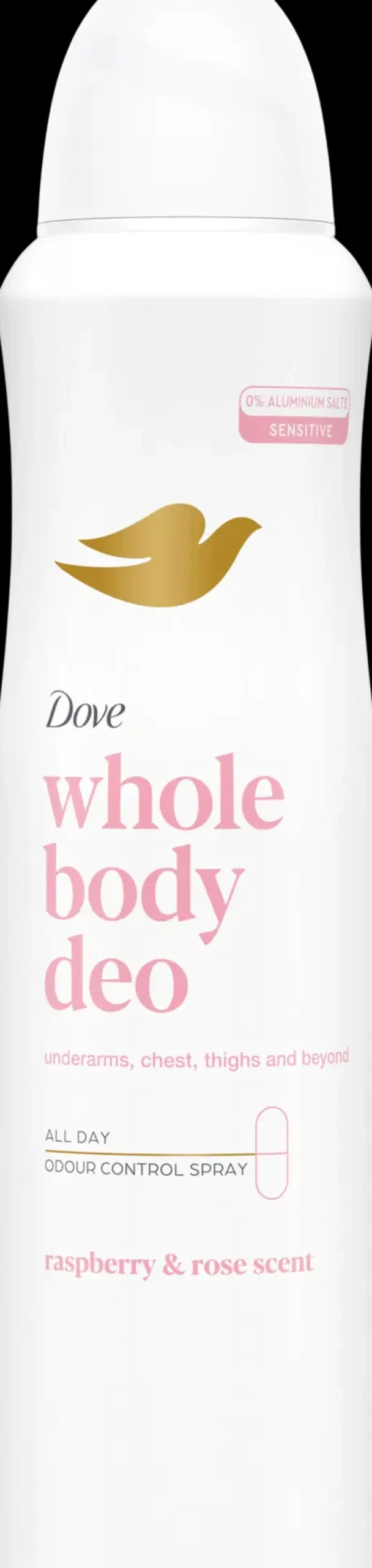 Kehomme hikoilevat ja tuoksuvat mistä tahansa – kysy vaikka rintaliiveiltä pitkän, kuuman päivän jälkeen. Olemme saaneet tarpeeksemme kehon hajusta, joten loimme tämän: koko vartalon deodorantin, joka tarjoaa koko päivän hajukontrollin, hoitaa herkkää ihoa ja antaa itsevarmuutta päästä varpaisiin. Olipa kyseessä helleaalto tai hot jooga, tämä koko vartalon deodorantti on tukenasi – kainaloista rintakehään, reisiin ja muualle. Vadelma & ruusu -koko vartalon deodorantti yhdistää Dove-tuotteista tutun ihonhoidon tehokkaaseen hajukontrolliin koko vartalolle – myös herkille alueille. Koostumus sisältää hoitavia öljyjä ja glyseriiniä. Se pysäyttää hajut jo niiden lähtöpisteessä ja pitää sinut raikkaana. Kun sanomme ”koko vartalon deodorantti”, me tarkoitamme sitä. Käytä tätä missä tahansa, missä koet kehon hajua – rintojen alla, reisissä, alaselässä, jaloissa, kainaloissa ja muualla. Kyllä, tämä ihoa hellivä koostumus on myös dermatologisesti testattu. Tämä näkymätön deodorantti on läpinäkyvää ja sen sotkuton suunnittelu mahdollistaa helpon koko vartalon käytön. Deodorantti on rikastettu vadelma & ruusu -tuoksulla, joka pitää sinut raikkaana koko päivän – minne tahansa päivä sinut viekin. Vain ulkoiseen käyttöön.