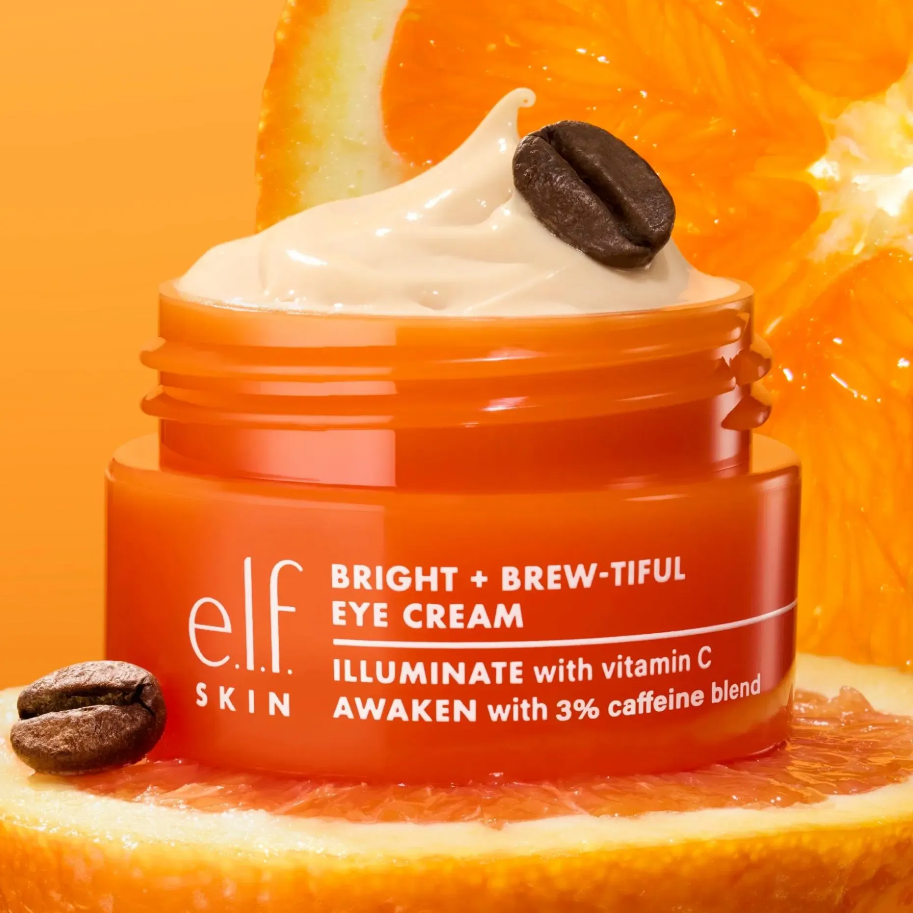 Herätä silmäsi e.l.f. SKIN Bright + Brew-tiful Eye Cream -silmänympärysvoiteella – kirkastava silmänympärysvoide, joka saa katseen näyttämään virkeältä ja levänneeltä. Tehokas C-vitamiini vaalentaa tummia silmänalusia, banaanisävyinen pigmentti tuo välitöntä hehkua ja 3 % kofeiiniseos auttaa vähentämään turvotusta – kuin pikainen “eye-spresso”-buusti väsyneelle iholle. Kevyt ja viilentävä koostumus imeytyy nopeasti ja toimii täydellisesti myös meikin alla – saat levänneen lookin, vaikka yöunet jäisivät lyhyiksi.