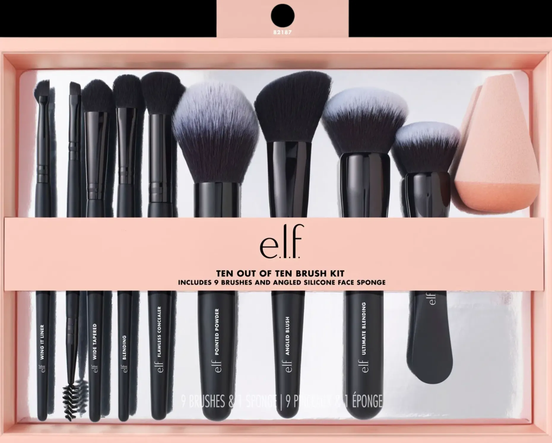Luo täyden kympin meikki! e.l.f.:n Cosmetics 10 out of 10 -sivellinsetti sisältää e.l.f.:n 10 suosituinta sivellintä yhdessä paketissa. Täydellinen setti upean meikin luomiseen. Setti sisältää: kaikki siveltimet ja meikkisienet, joita tarvitset meikin levittämiseen, kulmien muotoiluun, silmien rajaamiseen, contouring-meikkiin ja ihon viimeistelyyn.