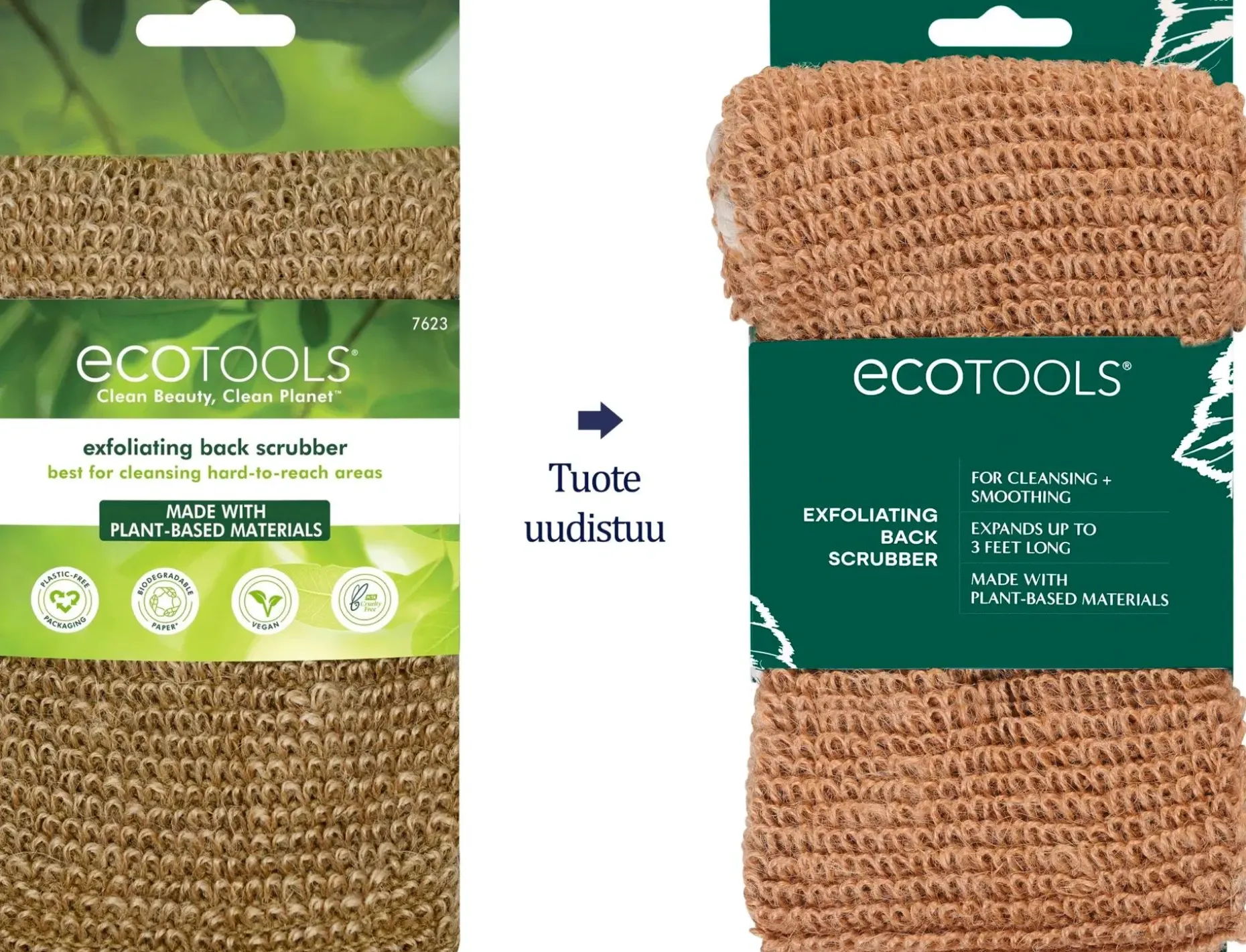 Ecotoolsin kuoriva selänpesin on kätevillä kahvoilla varustettu kankainen pesin, jolla peset ja kuorit helposti selän ihon kauttaaltaan. Kastele pesin kunnolla, lisää mieleisesi pesuaine ja tartu pesimen kumpaankin kahvaan. Pese selkä edestakaisilla liikkeillä. Käytön jälkeen huuhtele ja kuivata ilmavasti.