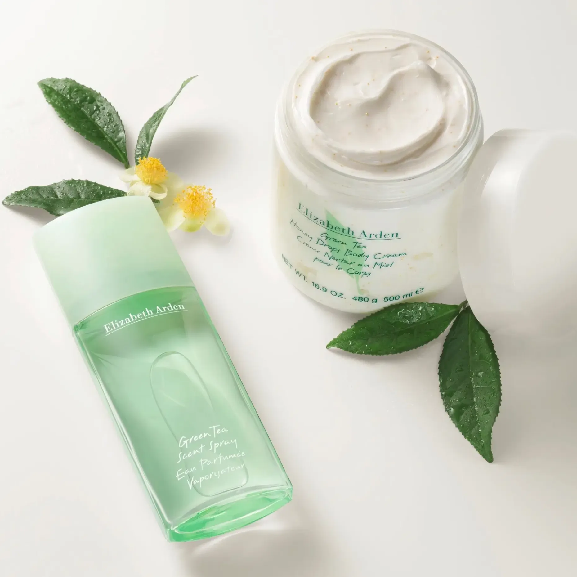 Elizabeth Arden Green Tea -tuoksu on tuulahdus ihanan vehreästä maailmasta. Se on piristävä ja energisoiva tuoksu, joka virkistää aisteja ja hellii sielua. Ensituoksu: Vihreä tee, bergamotti, sitruuna, appelsiini ja piparminttu. Sydäntuoksu: Raparperi, jasmiini, sellerinsiemen ja neilikka. Pohjatuoksu: Jäkälä, meripihka ja myski.