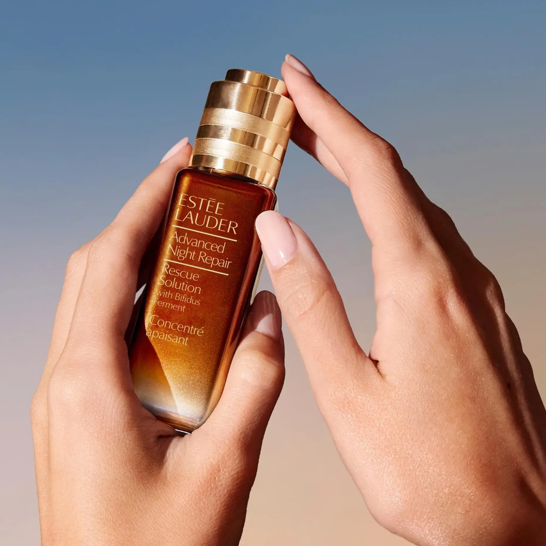 Advanced Night Repair Rescue Solution Serum on monitoiminen seerumi, joka lievittää näkyvää ärsytystä ja punoitusta vain yhdessä tunnissa ja samalla vahvistaa ihoa, jotta se reagoi vähemmän voimakkaisiin stressitekijöihin ja rasitukseen. Tämä seerumi auttaa myös palauttamaan ihon, jotta ihon tekstuuria hienojen juonteiden ja näkyvien huokosten osalta parannetaan. Ihon kirkkaus ja hehku paranevat myös.
