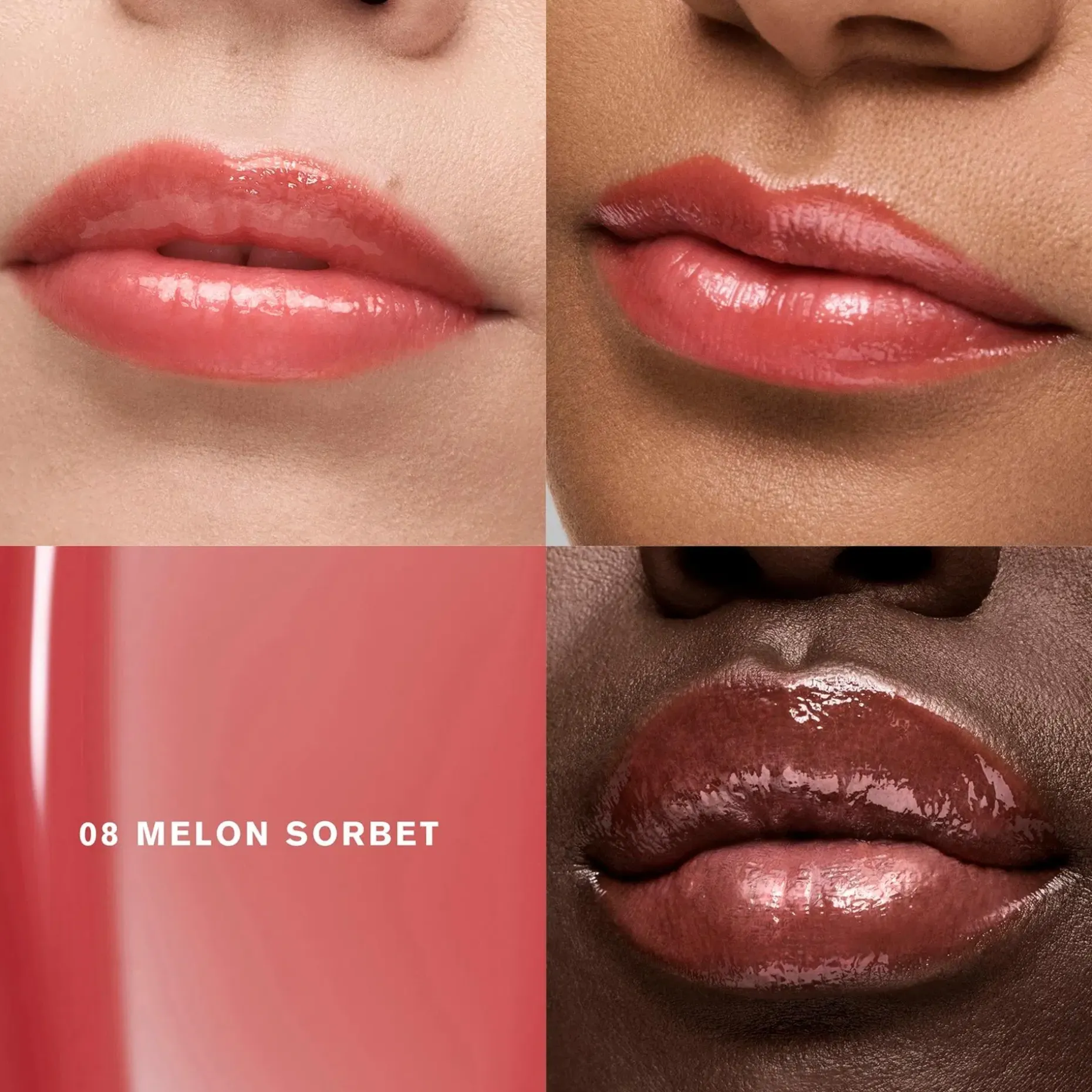 Tämä innovatiiviseen vesi + öljy -emulsioon perustuva huuliöljy antaa huulille kiiltävän pinnan ja hemmottelee samalla huulia tarjoamalla antioksidanttisuojan ja kosteutusta jopa 24 tunnin ajan. Huuliöljy tuo huulille näyttävää volyymia plumping-efektin avulla ja tarjoaa suojaa, mukavuutta sekä säteilevän kiillon. Koostumus sisältää 98-prosenttisesti ihoa hoitavia ainesosia, joista 38 % koostuu ravitsevista öljyistä. E-vitamiini antaa antioksidanttisuojaa ja hyaluronihappo kosteuttaa huulia tehokkaasti.