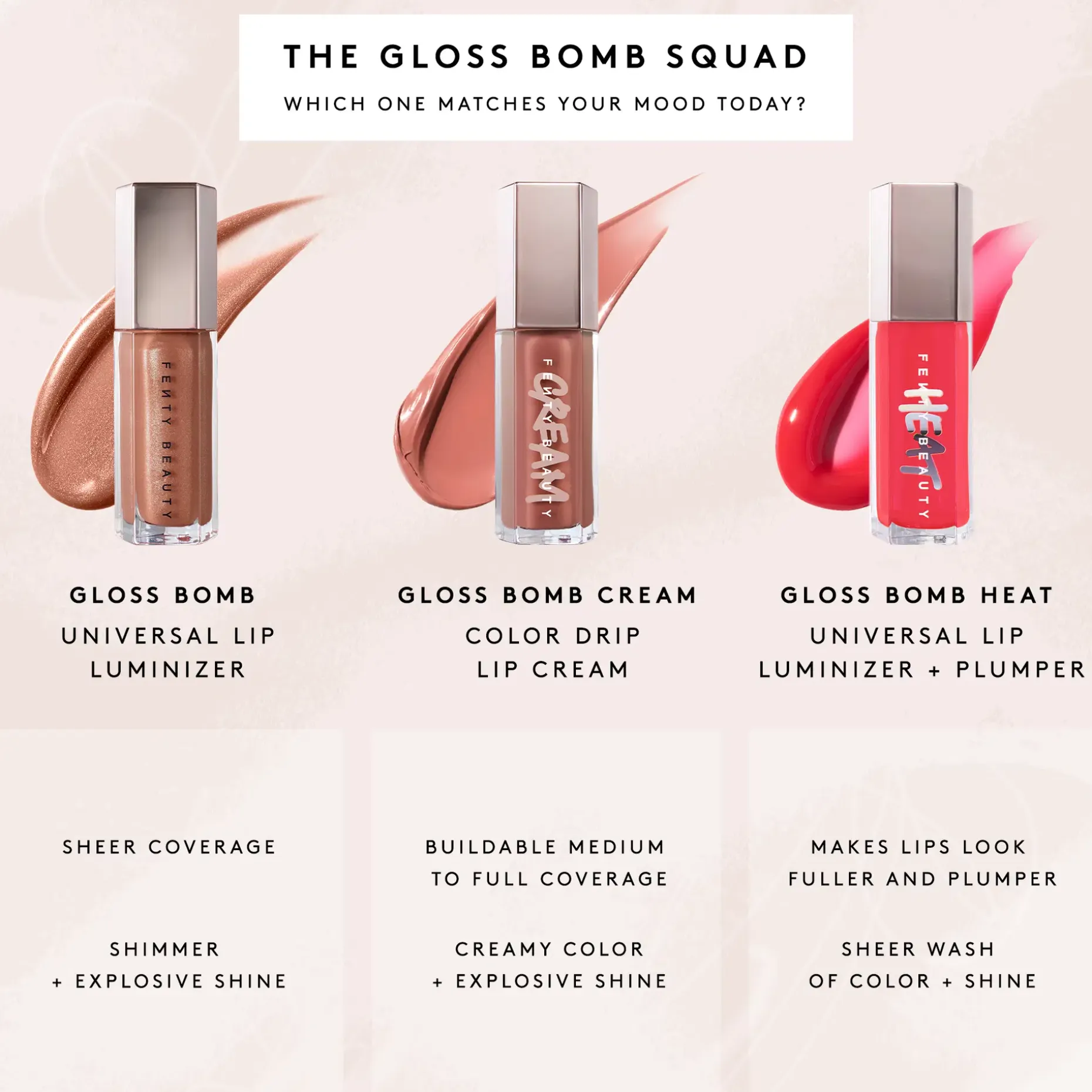 Gloss Bomb Heat Universal Lip Luminizer + Plumper -huulikiillolla on innovatiivinen, huulia täytelöittävä vaikutus. Sisältää ainesosia, jotka tuovat huulille kevyen kihelmöivän ja lämmittävän tunteen. Rikastettu hoitavalla sheavoilla ja E-vitamiinilla, jotka säilyttävät kosteuden ja antaa upean intensiivisen wet-look-lopputuloksen. Alkuperäinen Gloss Bomb, jota jo rakastat on nyt vielä kuumempi.