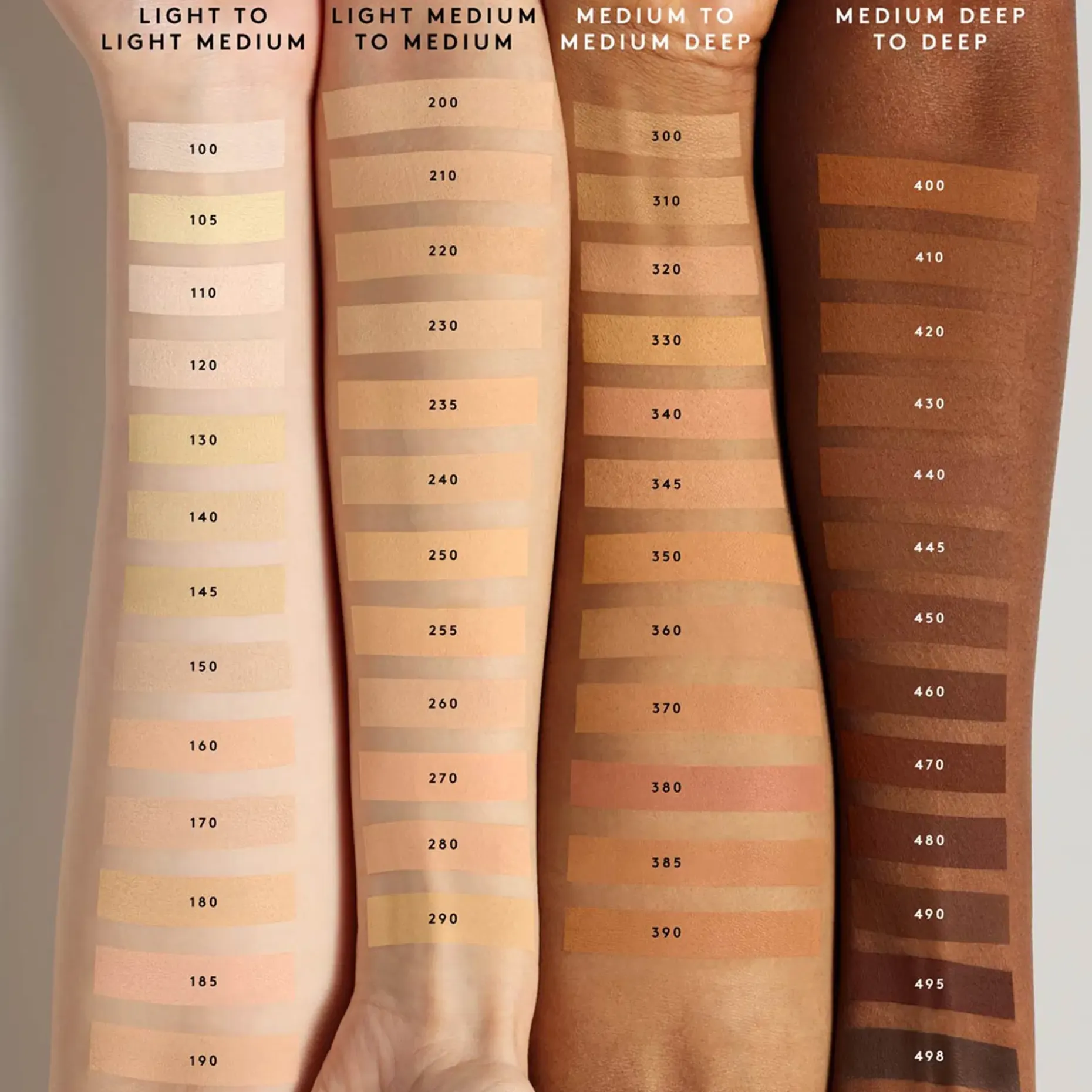 100, 120, 130, 140, 145, 150, 160, 170, 180, 185, 190, 200, 210, 220, 230, 235, 240, 250, 255, 260, 270, 280, 290, 300, 310, 320, 330, 340, 345, 350, 360, 370, 380, 385, 390, 400, 410, 420, 430, 440, 445, 450, 460: TALC, NYLON-12, SYNTHETIC FLUORPHLOGOPITE, KAOLIN, ISOAMYL LAURATE, DIMETHICONE, ZINC STEARATE, PHENYL TRIMETHICONE, 1,2-HEXANEDIOL, CAPRYLYL GLYCOL, MAGNESIUM MYRISTATE, POLYESTER-4, BORON NITRIDE, BARIUM SULFATE, PHENOXYETHANOL, DIMETHICONOL, DECYLENE GLYCOL, HYDRATED SILICA, METHYL METHACRYLATE CROSSPOLYMER, ALUMINA, MAGNESIUM OXIDE. MAY CONTAIN/PEUT CONTENIR (+/-): TITANIUM DIOXIDE (CI 77891), IRON OXIDES (CI 77491, CI 77492, CI 77499), YELLOW 5 LAKE (CI 19140).105, 110: TALC, NYLON-12, SYNTHETIC FLUORPHLOGOPITE, KAOLIN, ISOAMYL LAURATE, DIMETHICONE, ZINC STEARATE, PHENYL TRIMETHICONE, 1,2-HEXANEDIOL, CAPRYLYL GLYCOL, MAGNESIUM MYRISTATE, POLYESTER-4, BORON NITRIDE, BARIUM SULFATE, PHENOXYETHANOL, DIMETHICONOL, DECYLENE GLYCOL, HYDRATED SILICA, METHYL METHACRYLATE CROSSPOLYMER, TITANIUM DIOXIDE (CI 77891), IRON OXIDES (CI 77491, CI 77492, CI 77499). 470, 480, 490, 495, 498: TALC, NYLON-12, SILICA, POLYESTER-4, SYNTHETIC FLUORPHLOGOPITE, ZINC STEARATE, ISOAMYL LAURATE, PHENYL TRIMETHICONE, OCTYLDODECYL STEAROYL STEARATE, PENTAERYTHRITYL TETRAISOSTEARATE, 1,2-HEXANEDIOL, CAPRYLYL GLYCOL, DIMETHICONE, METHYL METHACRYLATE CROSSPOLYMER, PHENOXYETHANOL, DIMETHICONOL, DECYLENE GLYCOL, HYDRATED SILICA, TOCOPHERYL ACETATE, IRON OXIDES (CI 77491, CI 77499), YELLOW 5 LAKE (CI 19140).